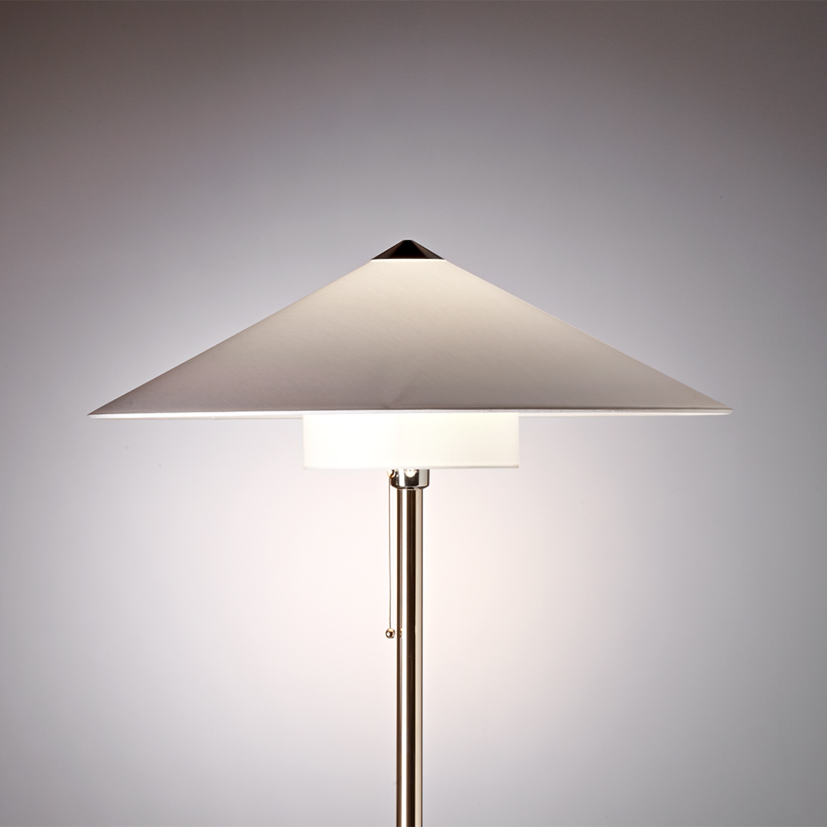 Jede Stehlampe wird mit größter Sorgfalt in Deutschland gefertigt und ist fortlaufend nummeriert. Das Tecnolumen-Signet bezeugt ihre Authentizität und die enge Verbindung zur Bauhaus-Tradition. Empfohlen wird die Verwendung einer matten LED-Lampe, um die weiche Lichtwirkung des Stoffschirms optimal zur Geltung zu bringen.
