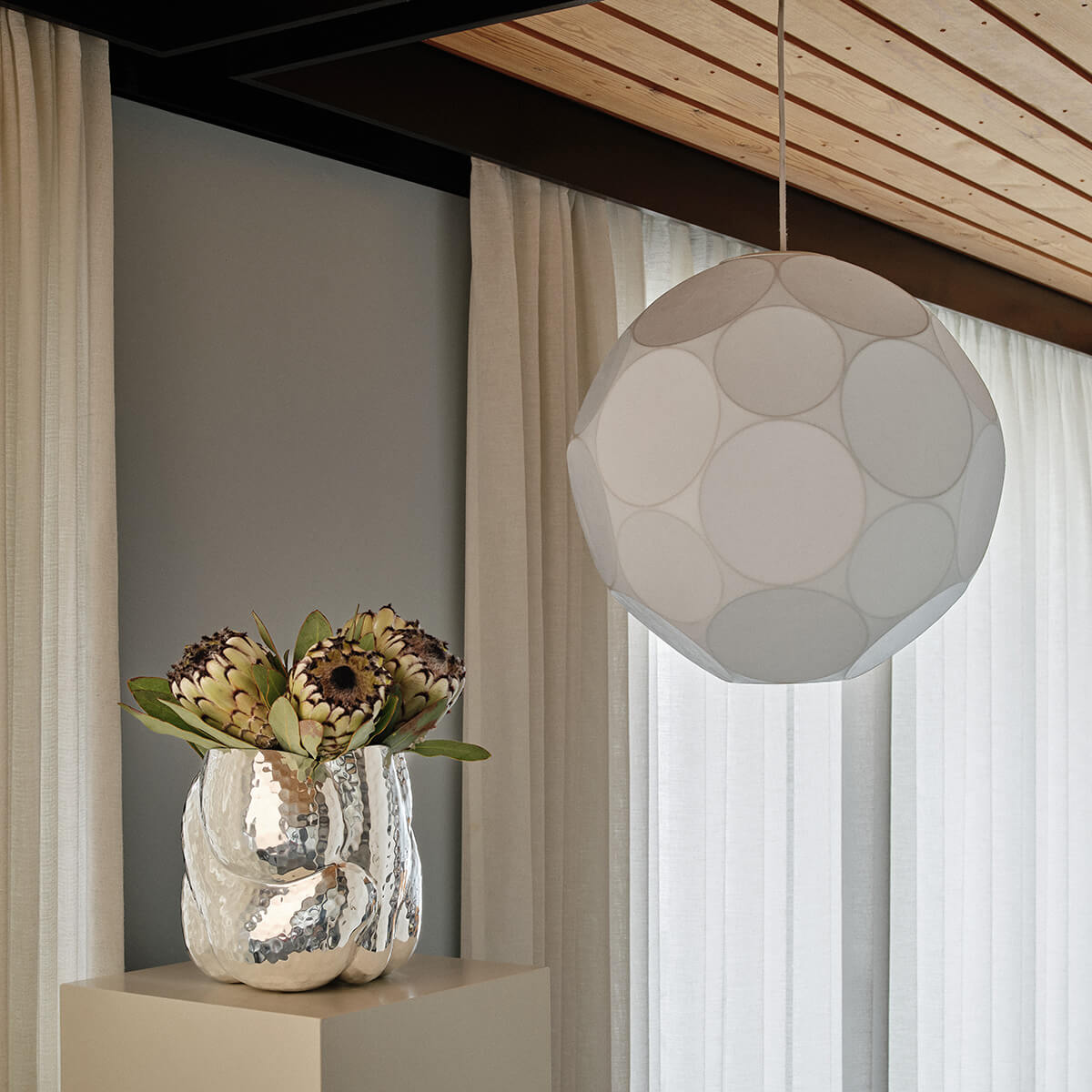 Die Soft Medium von Tom Dixon steht für ruhige Eleganz, moderne Materialästhetik und ein besonders harmonisches Lichtbild. Inspiriert von der nahezu perfekten Kugelform von Planeten, entfaltet diese Designer-Pendellampe eine sanfte, organische Präsenz, die Räume nicht dominiert, sondern atmosphärisch bereichert.