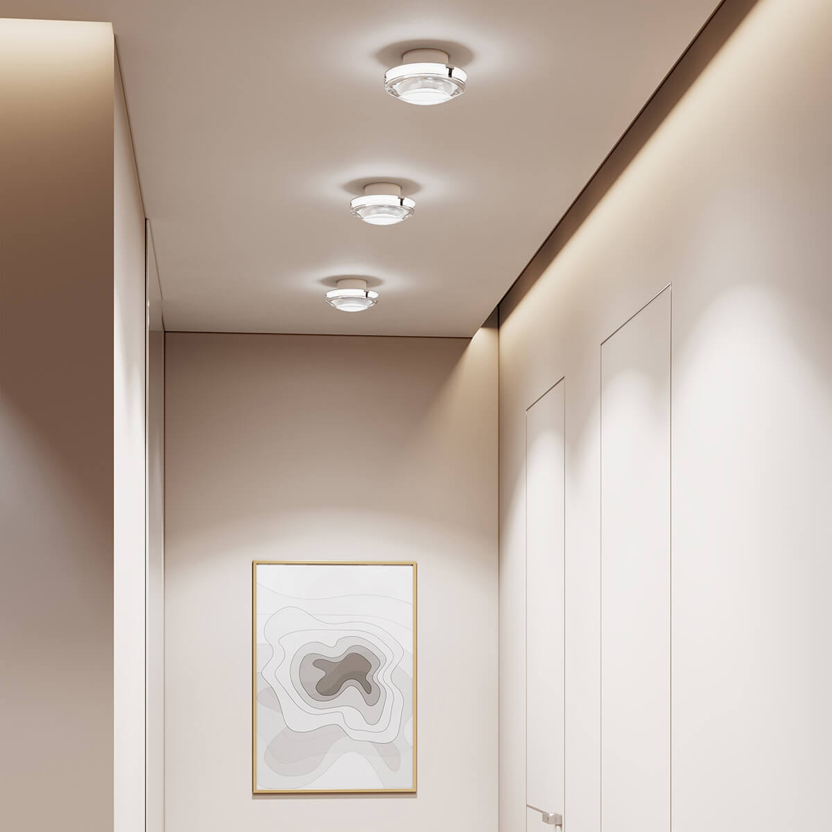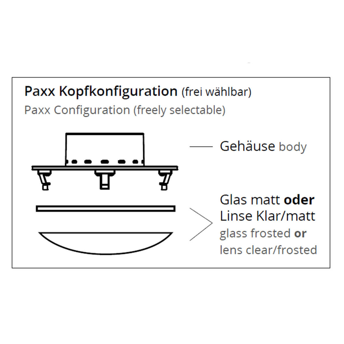 Bei der hier angebotenen Version der Top Light Paxx LED Deckenleuchte ist die klare Meg Maxx Linse bereits im Lieferumfang inbegriffen. Alternativ lässt sich die Lampe mit einer satinierten Linse oder einem matten Glas ausstatten. Der Lichtaustritt erhält hierdurch eine diffuse, ungerichtete Note, wodurch sich die Leuchte eher zur allgemeinen Grundbeleuchtung eignet.