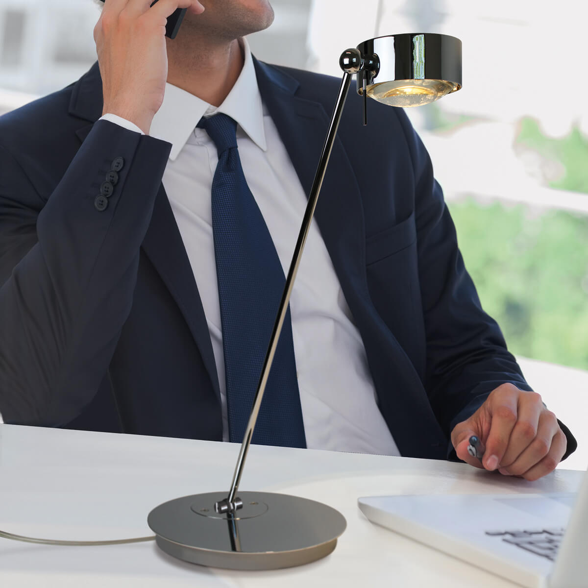 Die Top Light Puk Maxx Table Tischleuchte, 60 cm, ist individuell konfigurierbar und kann mit verschiedenartigen Einsätzen – immer wieder neu – bestückt werden. Die Einsätze sind als Zubehör erhältlich und kreieren ganz unterschiedliche Lichtszenarien: Klare Linsen sorgen für klar konturierte Lichtkegel, satinierte Gläser für ein ungerichtetes, diffuses Licht.