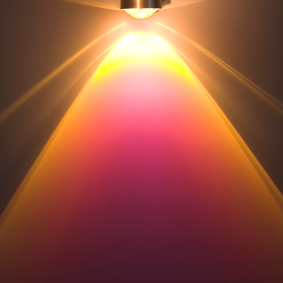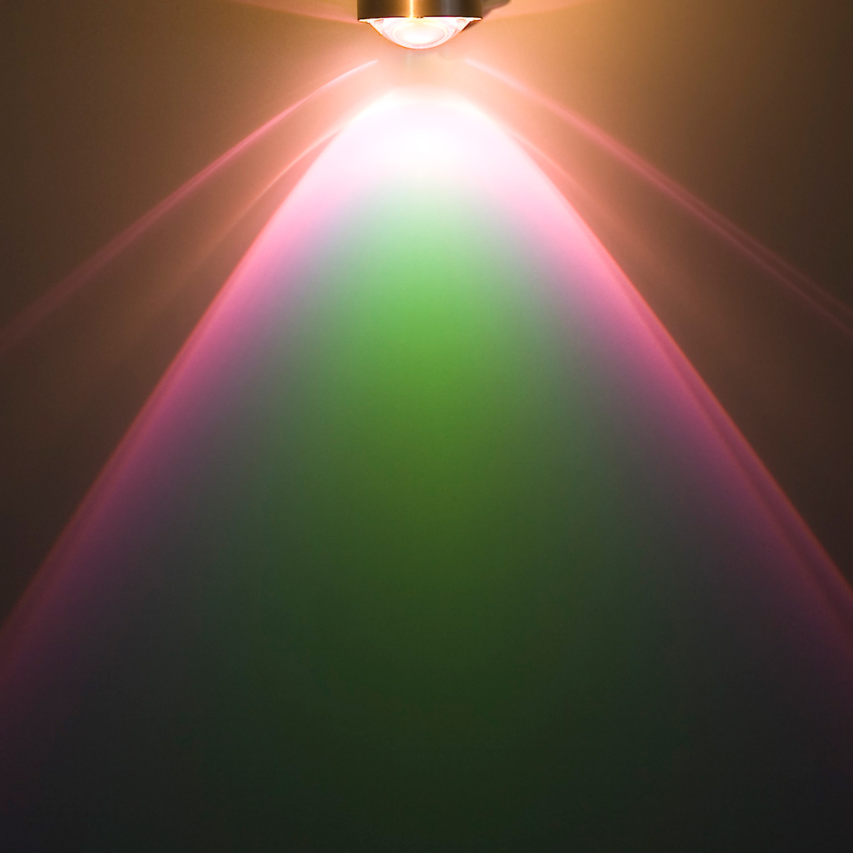 - Erzeugt einen farbig gefassten, leuchtenden Lichtschein