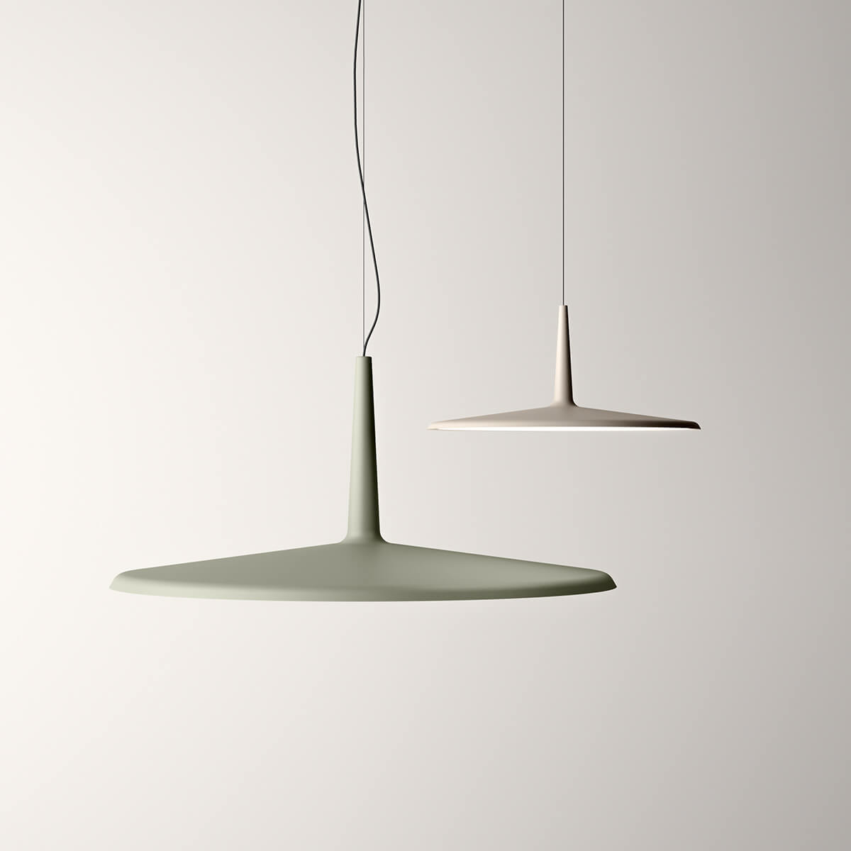 Die Vibia Pendelleuchte Skan steht für radikale Reduktion und architektonische Klarheit. Entworfen vom renommierten Studio Lievore Altherr Molina (LAM), verkörpert diese Designleuchte die Essenz modernen Lichtdesigns: eine feine, scheibenförmige Silhouette, die nahezu schwerelos an einem filigranen Kabel im Raum zu schweben scheint.