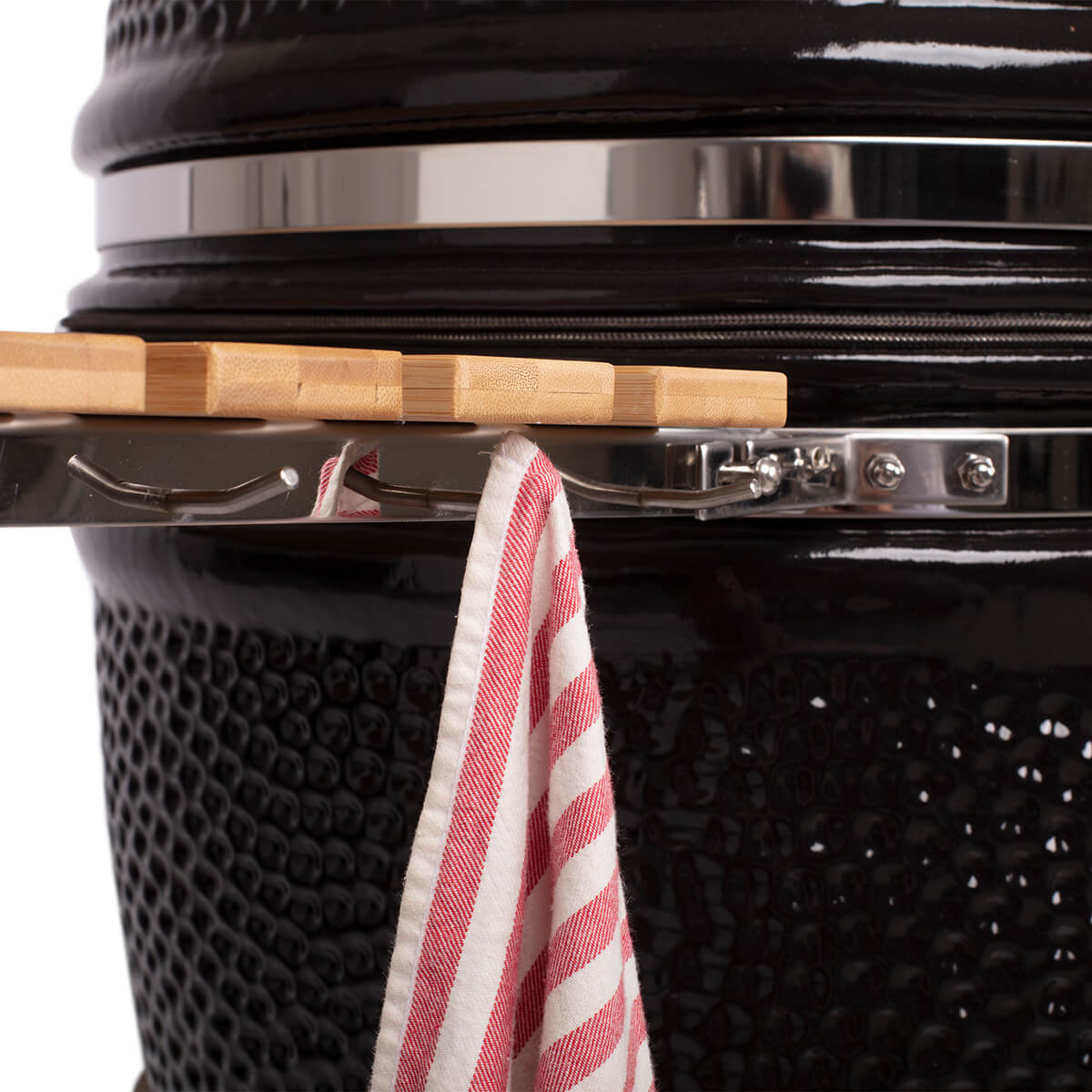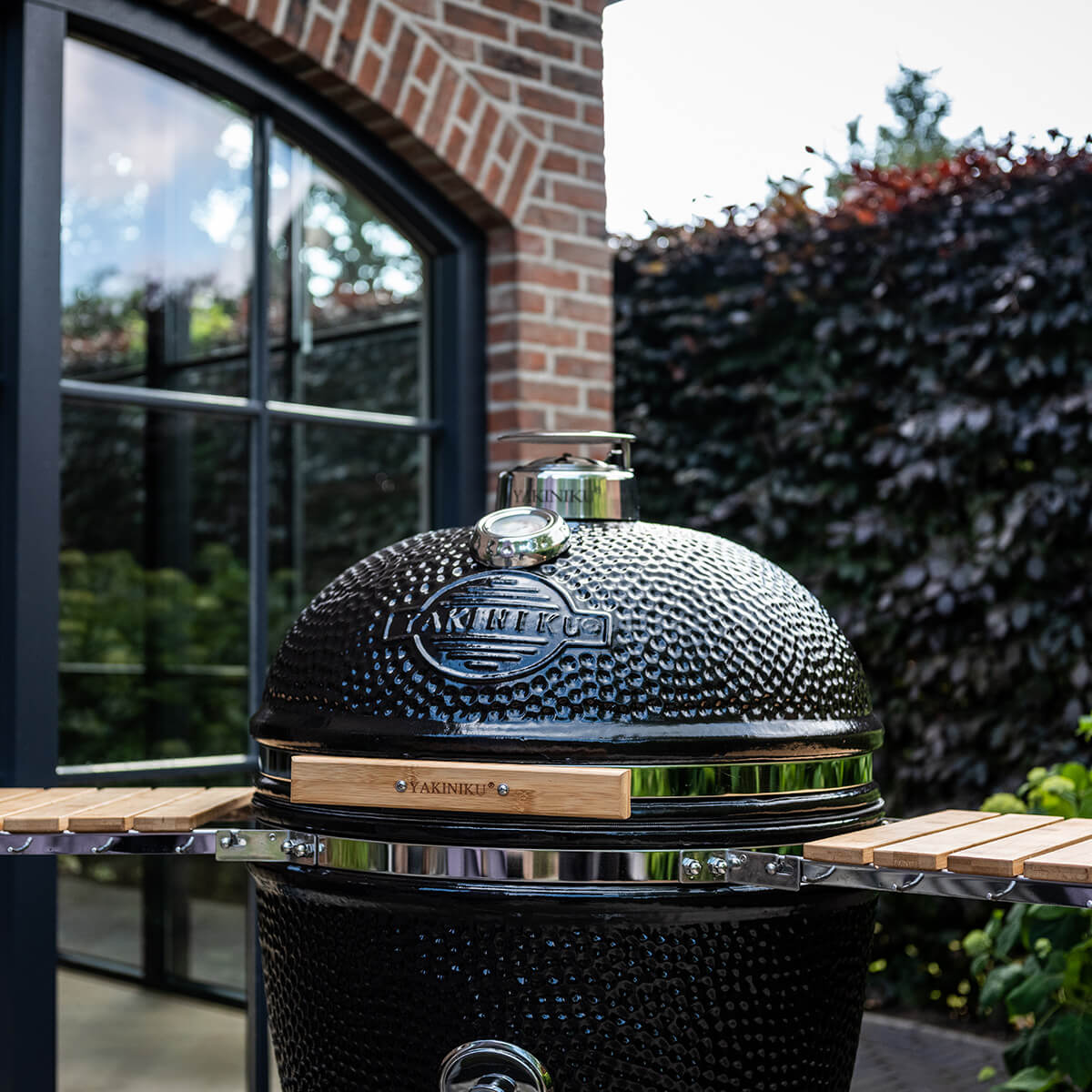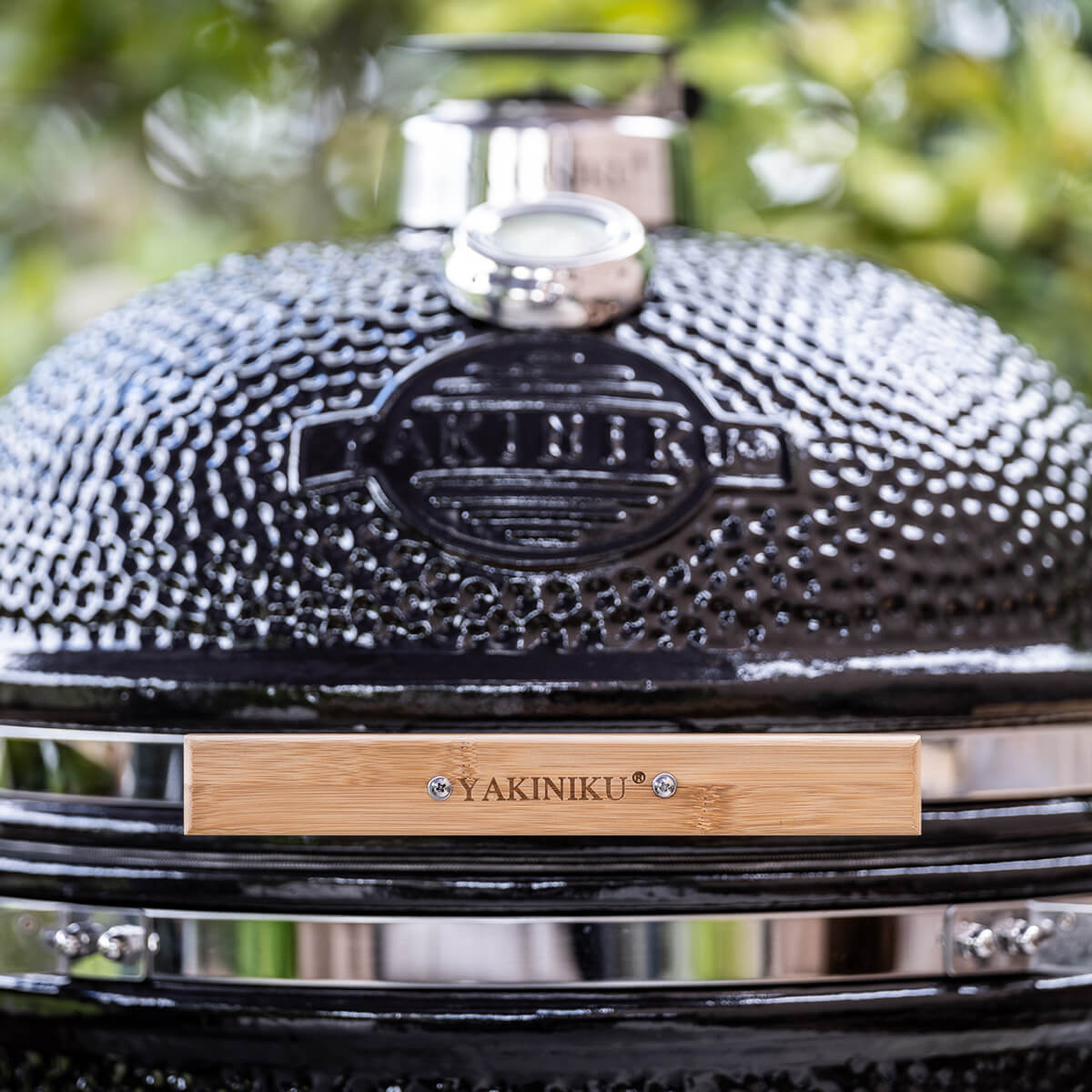 Dies macht den Holzkohlegrill zu einem robusten Kochgerät, an dem man lange Freude hat. Erhältlich ist der Kamado mit einer Grillfläche von 49 cm (Yakiniku Kamado Large) sowie 56 cm Durchmesser (Yakiniku Kamado XLarge). Zubehöroptionen wie Aschehaken und Pizzasteine machen das Grillerlebnis perfekt. Und die Lebenszeit Ihres Keramikgrills verlängern Sie mit dem passenden Reinigungsset und der Kamado Abdeckhaube.
