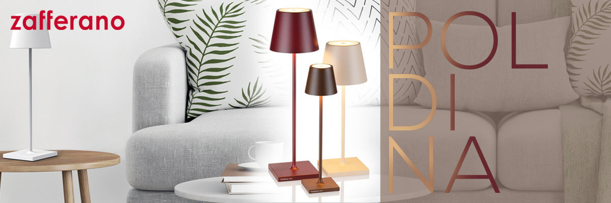 The Poldina portable lamp has become a global favourite—and for good reason. Rising from a square base, its slender stem leads to a softly rounded lampshade that radiates charm. But it is not just beautiful: the Poldina is a technical all-rounder. With IP65 protection, dimming capabilities, a long battery life, and fast charging, it masters every lighting need with ease. Its popularity is matched by its versatility: Zafferano AiLati offers the Poldina in a wide range of finishes and formats to suit every taste and setting. Whether in pure white, vibrant red, glossy chrome, or luxurious copper leaf, there is a style for every interior. Choose from rechargeable wall lights, table lamps, or floor lamps—and enjoy light wherever it is needed most.