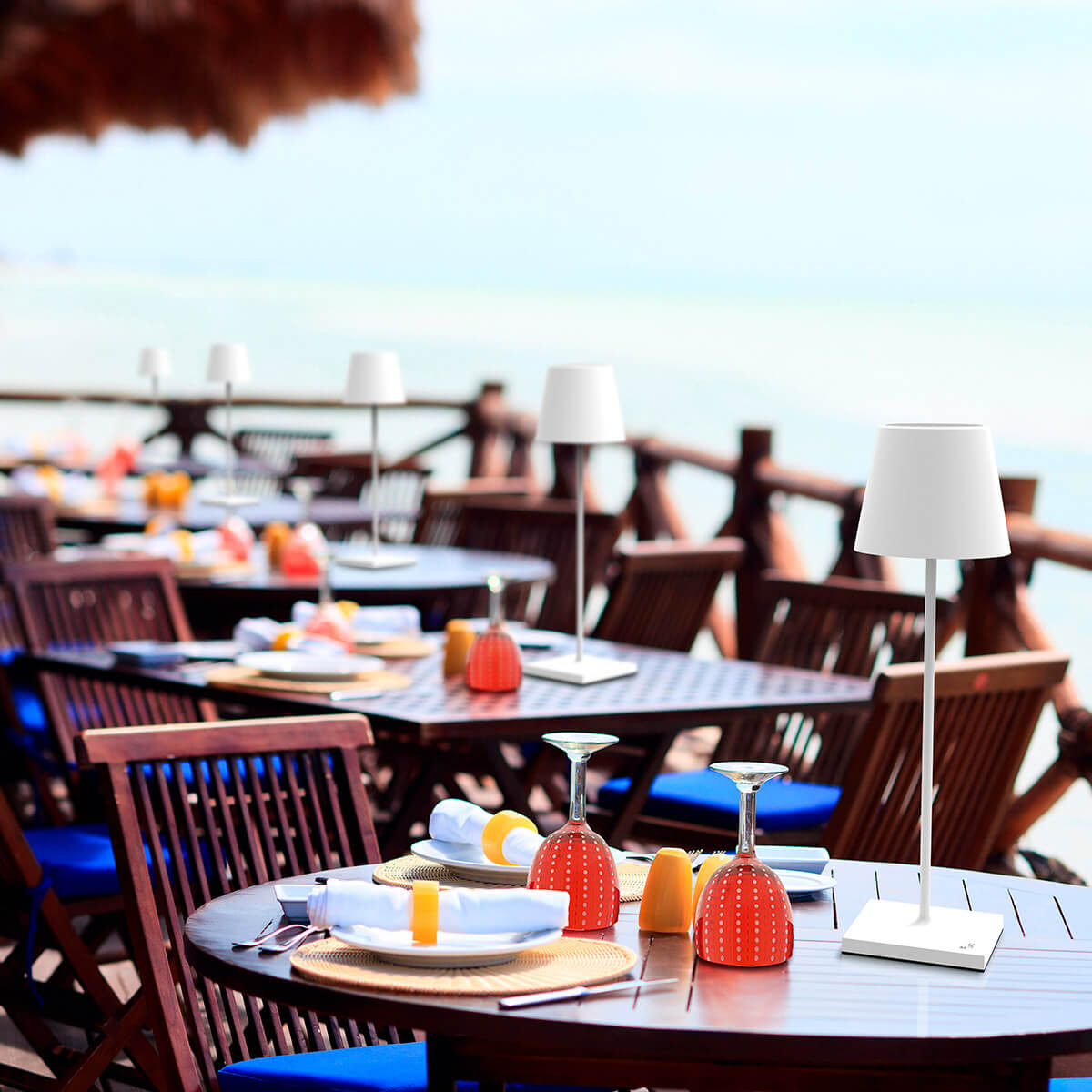Sichern Sie sich das Original aus Italien – zum attraktiven Vorteilspreis im Bündelangebot! Das hier angebotene Set umfasst sechs kabellose Zafferano Poldina Pro Akkuleuchten, dazugehörige Einzel-Kontaktladestationen mit USB-Kabel und eine Multi-Kontaktladestation, mit der sich alle Leuchten gleichzeitig wieder aufladen lassen. Das Angebot ist perfekt für Hotellerie, Gastronomie und Catering, wo sie auf Bistrotischen, Theken und Beistelltischen dekorative Lichtpunkte setzen.