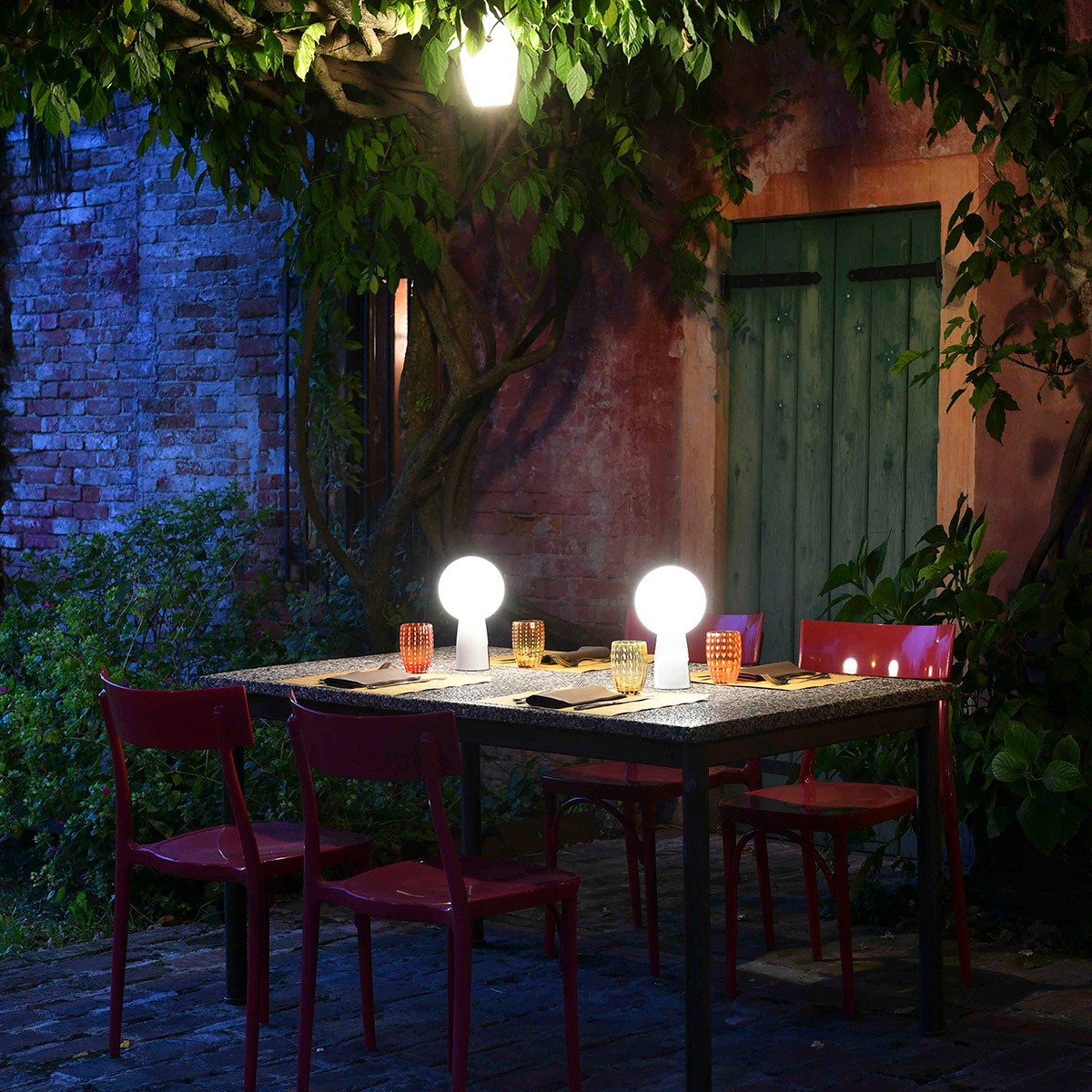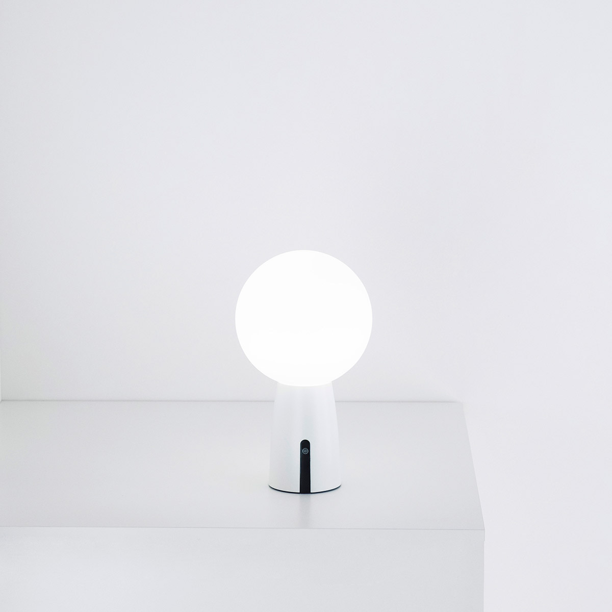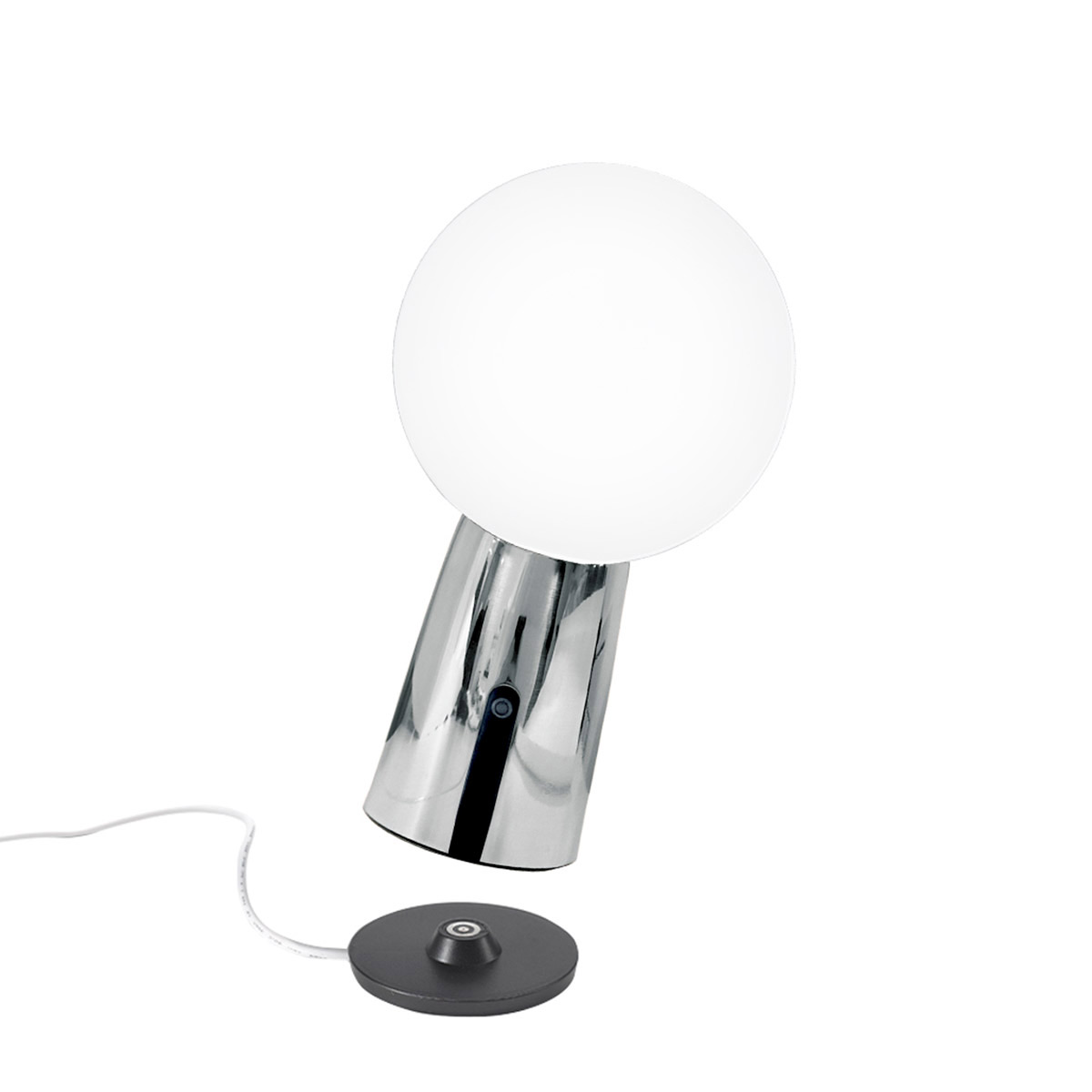 - Kabellose Tischlampe mit Schirm aus mundgeblasenem, satiniertem Opalglas