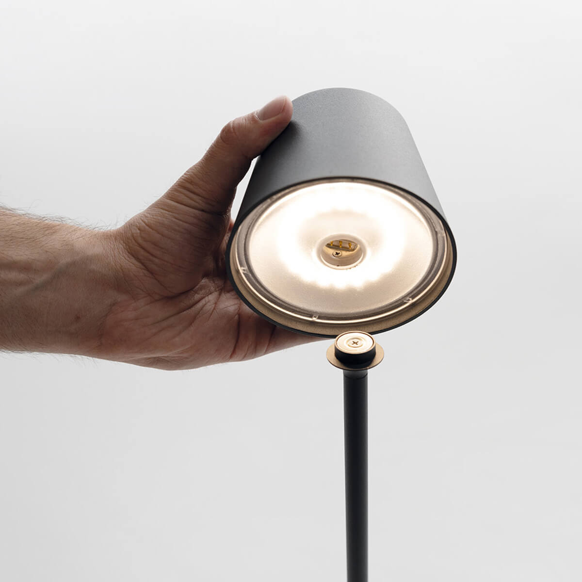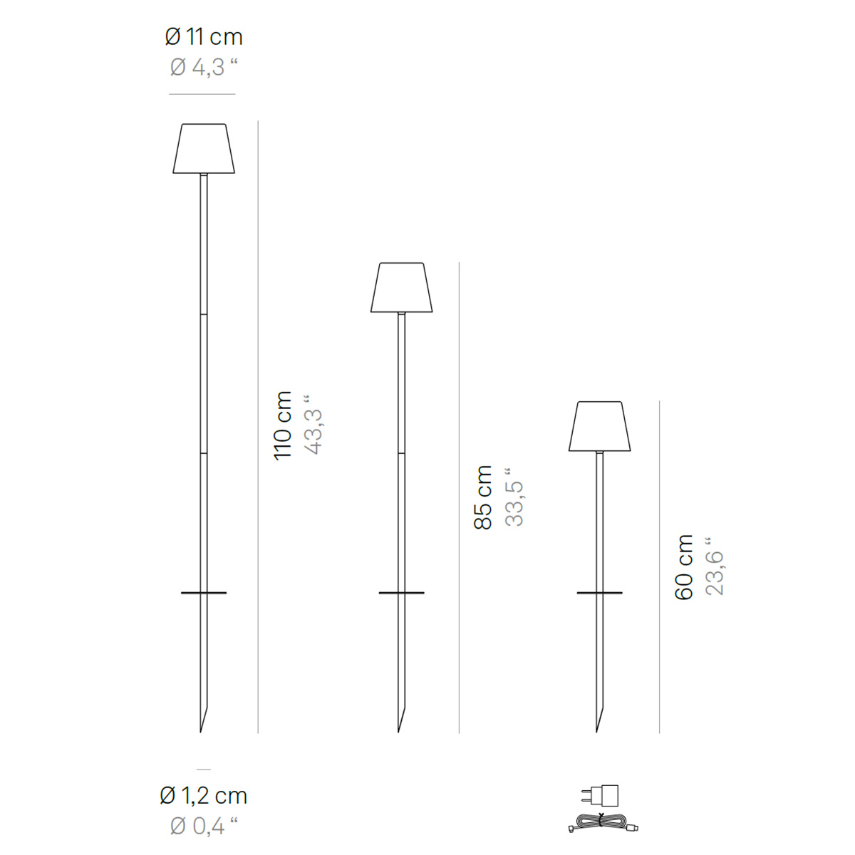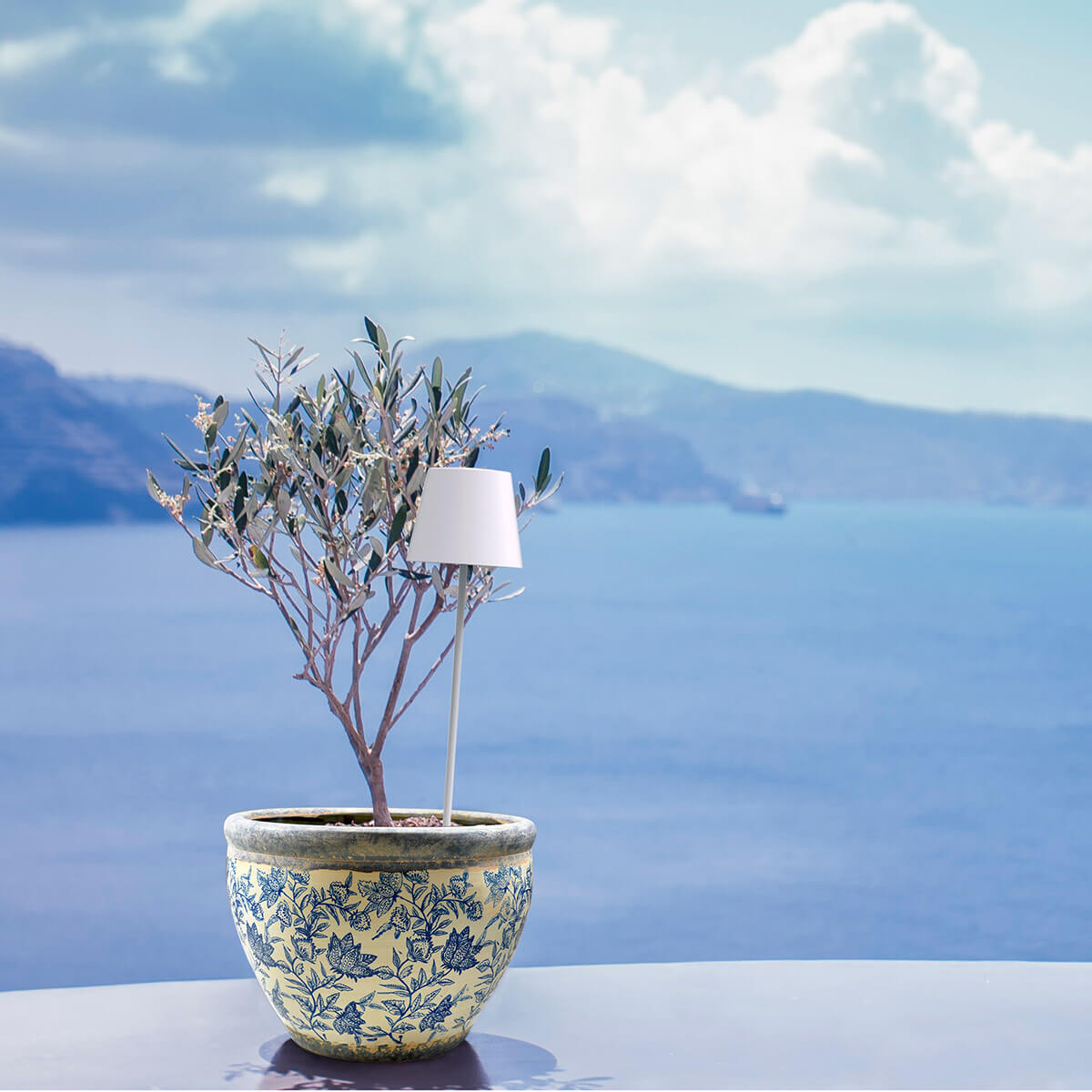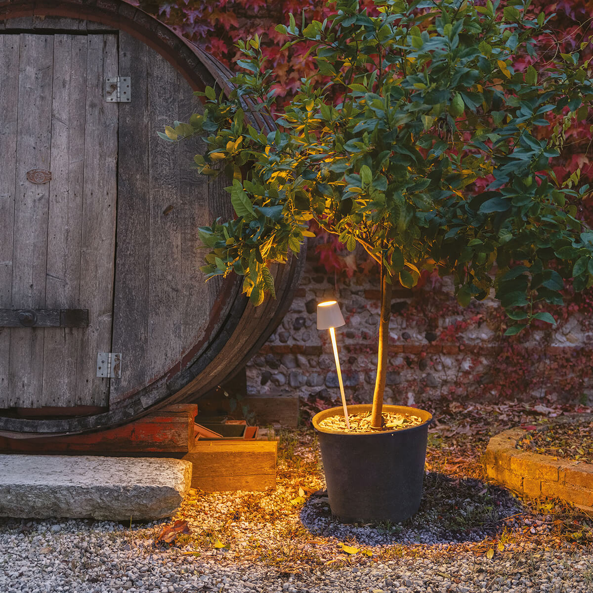 Die Zafferano Poldina Picchetto ist eine wiederaufladbare Akkulampe, die – da mit einem Erdspieß ausgestattet – in Blumenbeeten, Grünflächen und Blumentöpfen platziert werden kann. Zur Verlängerung des Leuchtenschafts sind optionale Verlängerungsstäbe von je 25 cm in unserem Onlineshop erhältlich. Um die Leuchte zu laden, wird einfach der magnetische Leuchtenkopf abgenommen und auf die mitgelieferte Ladestation gesetzt.