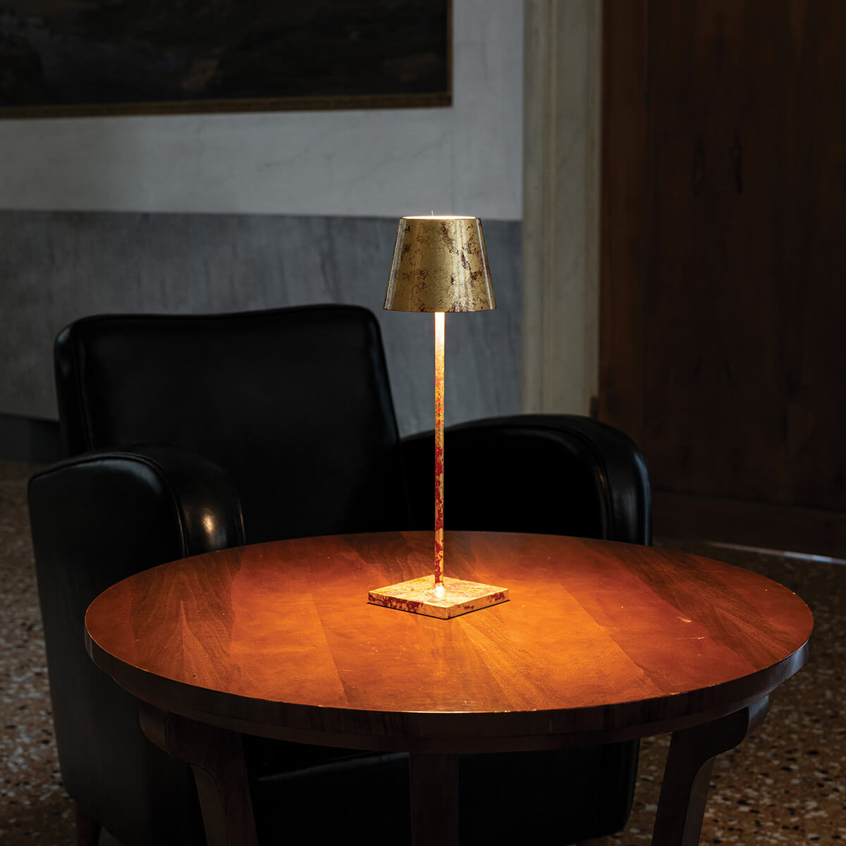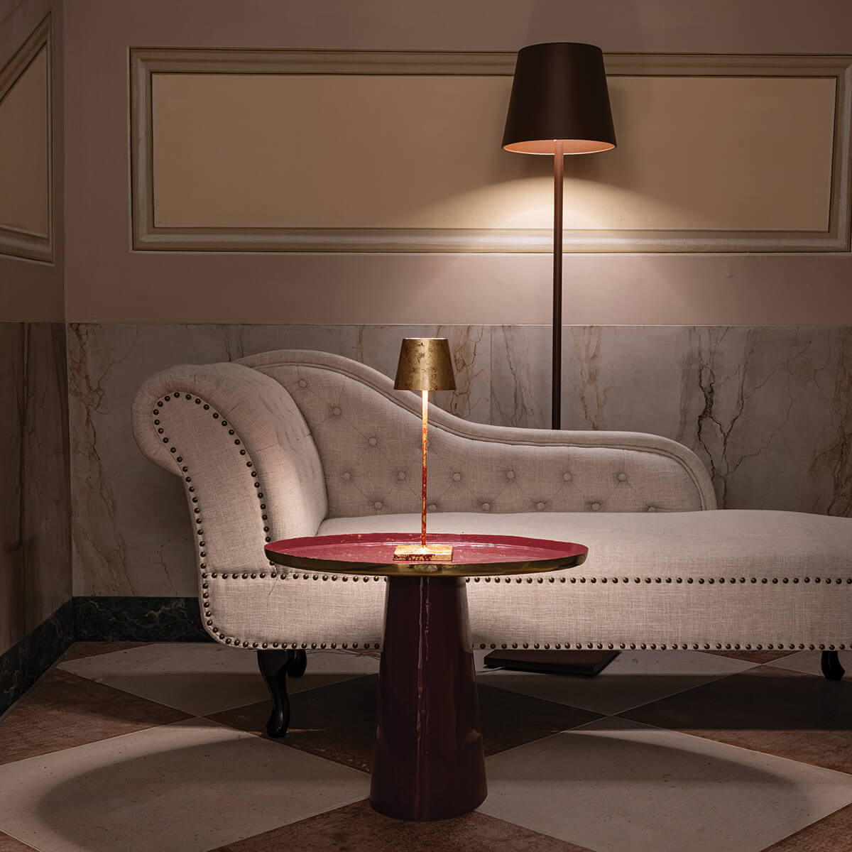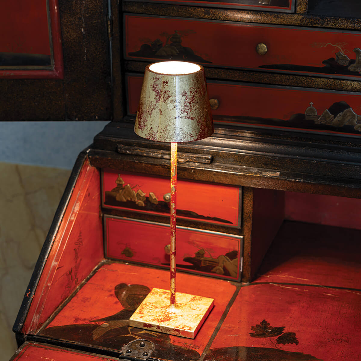 Wer es besonders edel mag, entscheidet sich für die handaufgetragenen Blattmetallisierungen in Gold, Silber und Kupfer. Und die perfekten Lichtquellen für Gastronomie, Restaurants und Hotels sind die Poldina Pro Akku-Tischleuchten mit kunstvoll anmutendem Craquelé-Effekt. Bitte beachten Sie jedoch, dass diese Modelle – ebenso wie die Leuchten in Gold und Chrom glänzend – nicht für den dauerhaften Einsatz im Outdoor-Bereich konzipiert worden sind und bei Nichtgebrauch nach drinnen genommen werden sollten.