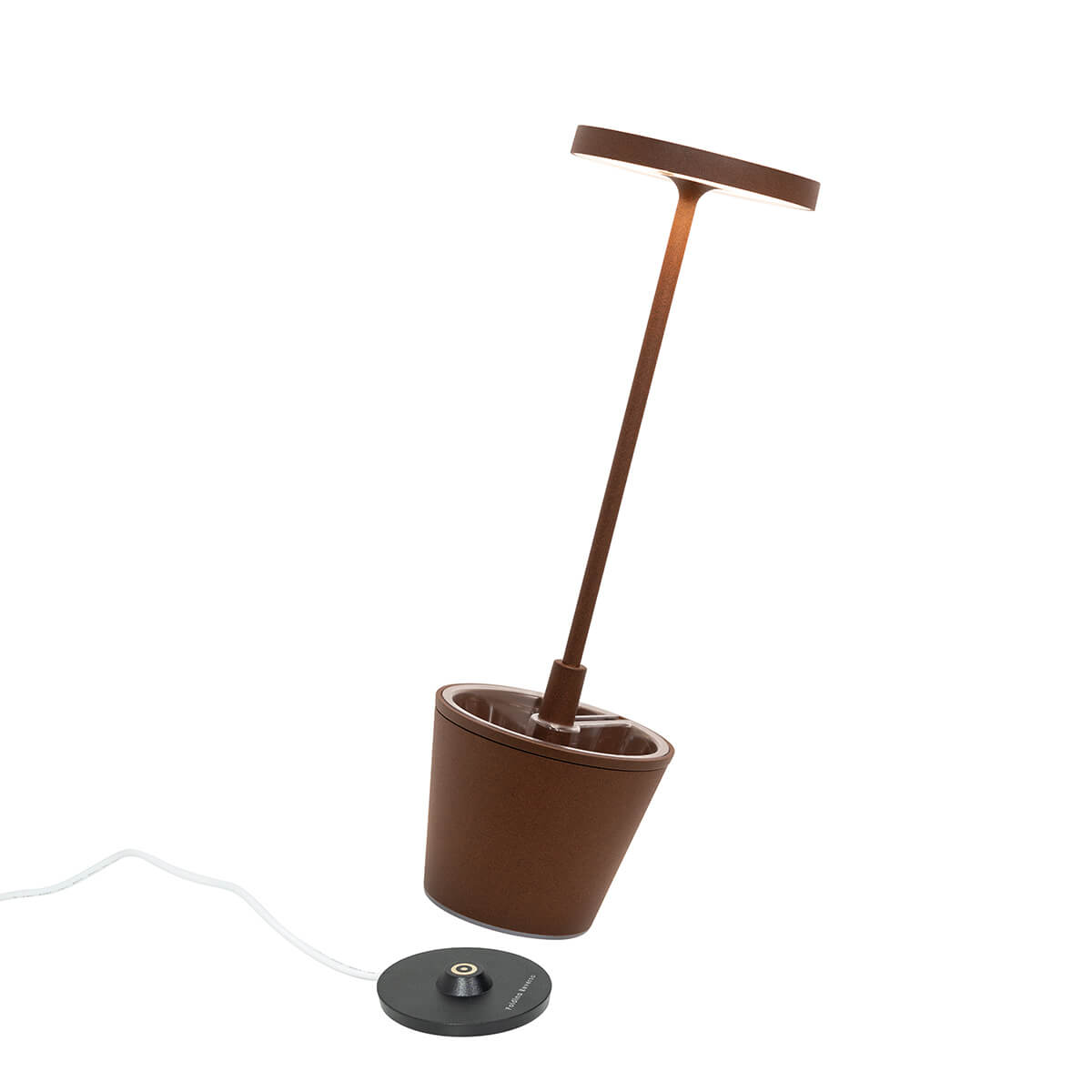 Der eingebaute leistungsstarke Akku versorgt die Zafferano Poldina Reverso Pro LED Akkulampe mit Energie für bis zu 12 Stunden Licht (bei maximaler Lichtstärke). Möchten Sie sie wieder aufladen, können Sie die mitgelieferte Kontaktladestation verwenden. Indem Sie die Ladestation an das Stromnetz anschließen und die Lampe auf der Stellfläche platzieren, initiieren Sie den Ladeprozess.