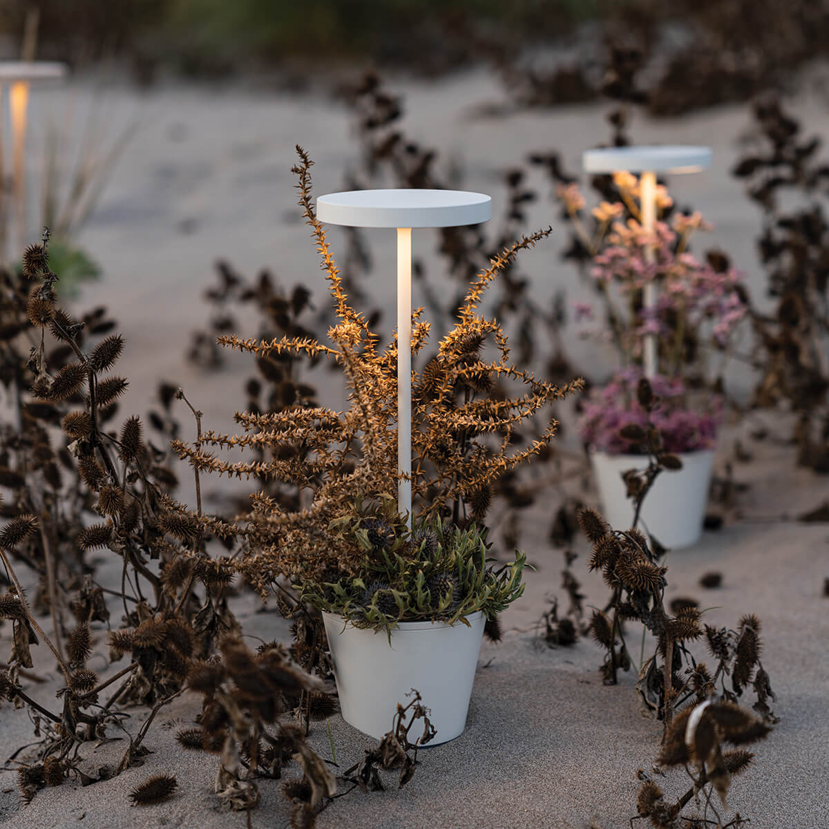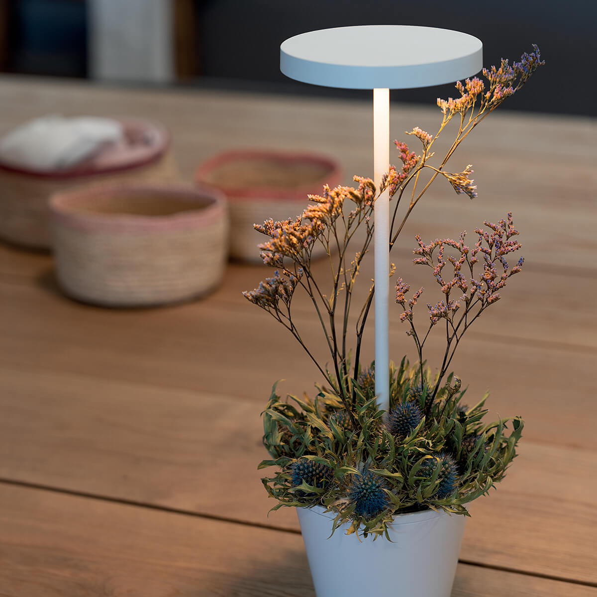 Ein eingebautes technisches Kontrollsystem schützt das Produkt vor Überladungen und gewährleistet auch bei abnehmender Akkuleistung einen gleichbleibenden Lichtstrom. Steht Ihnen die Ladestation nicht zur Verfügung, können Sie die Akkuleuchte mithilfe eines zertifizierten Aufladegeräts mit max. 5V DC/1A wieder aufladen.