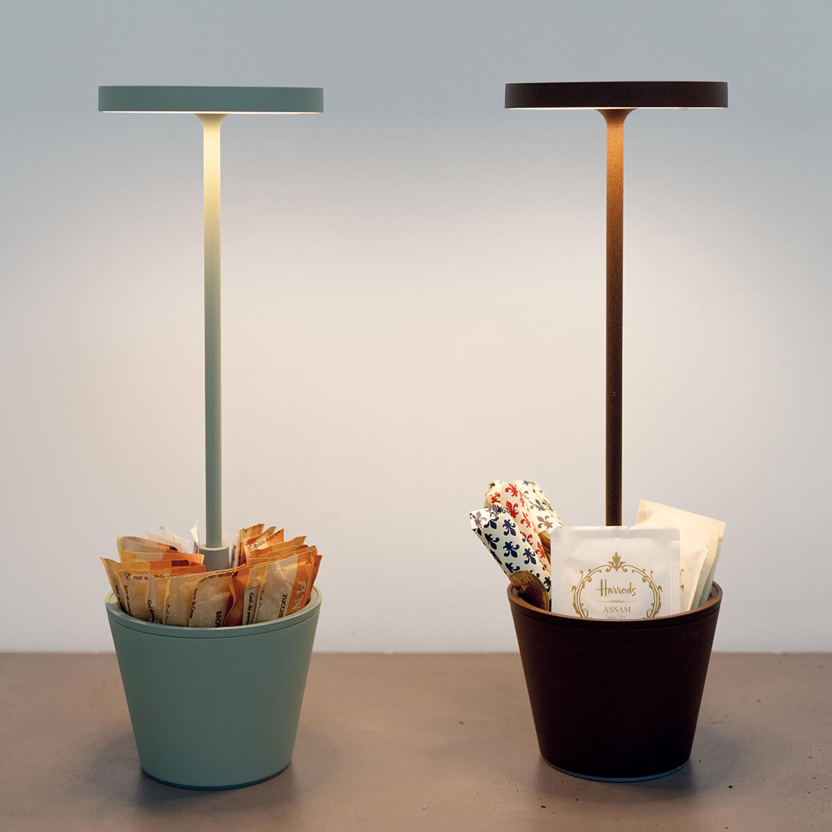 Hat die Tischleuchte ihren Zweck als Süßigkeitenspender erfüllt, können Sie sie einfach mit etwas anderem bestücken und auf Sideboards, Beistelltische oder Schreibtische stellen. Da die Zafferano Poldina Reverso ohne Leuchtenkabel auskommt, genießen Sie mit ihr alle Freiheiten mobilen Lichts.
