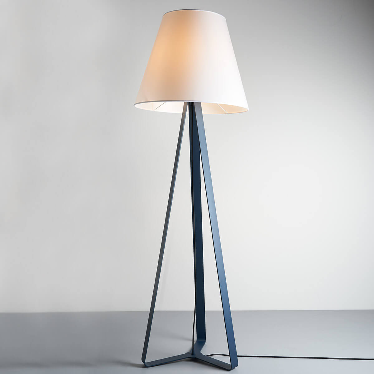 Die Etrè Stehleuchte von Zava, entworfen von dem renommierten Architekten und Designer Alberto Caramello, vereint in perfekter Harmonie moderne Ästhetik mit funktionaler Beleuchtung. Mit ihrer schlanken, dreibeinigen Konstruktion aus matt lackiertem Eisen und dem klassisch konischen Schirm aus weißem Methacrylat setzt die Leuchte kunstvolle Akzente in jedem Raum.