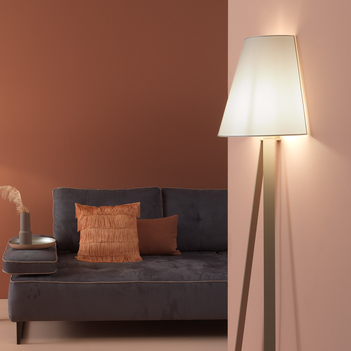 - Mit sanft gerundetem Leuchtenfuß in matter Farblackierung