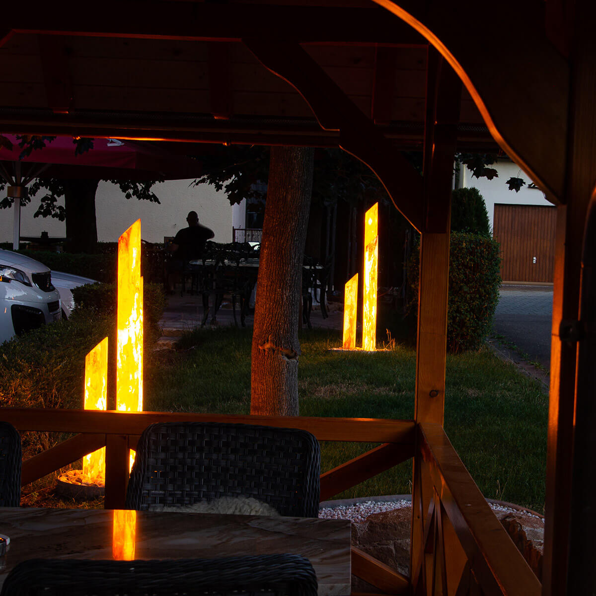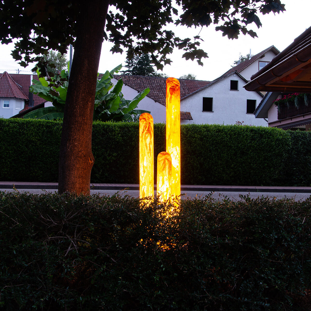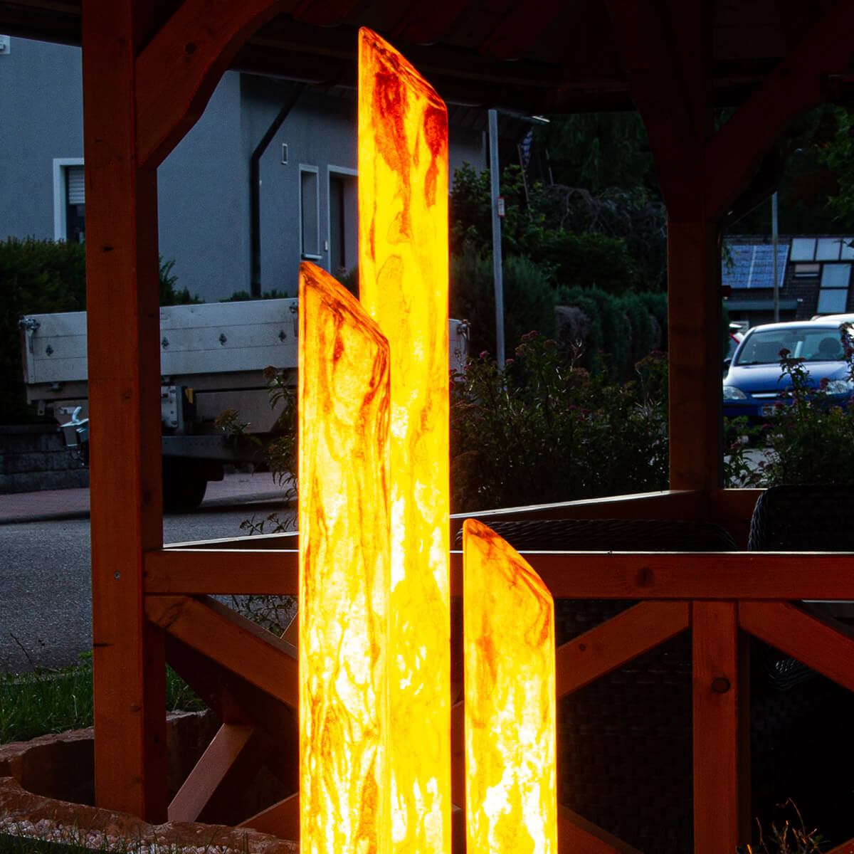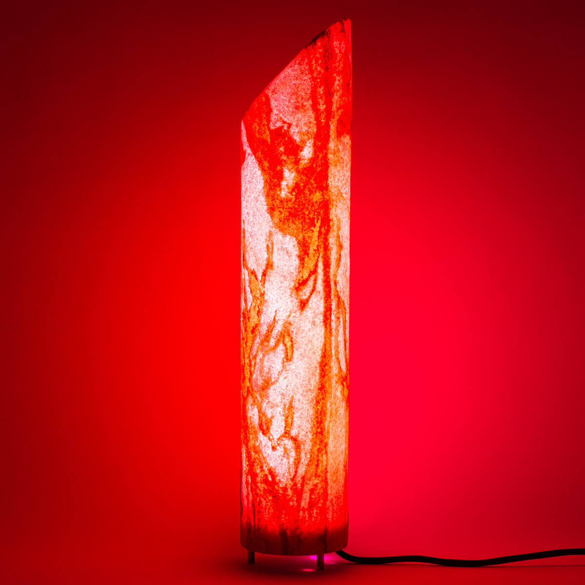 - Strukturierte Quarzsandsteinoberfläche – jede Leuchte ist ein Unikat