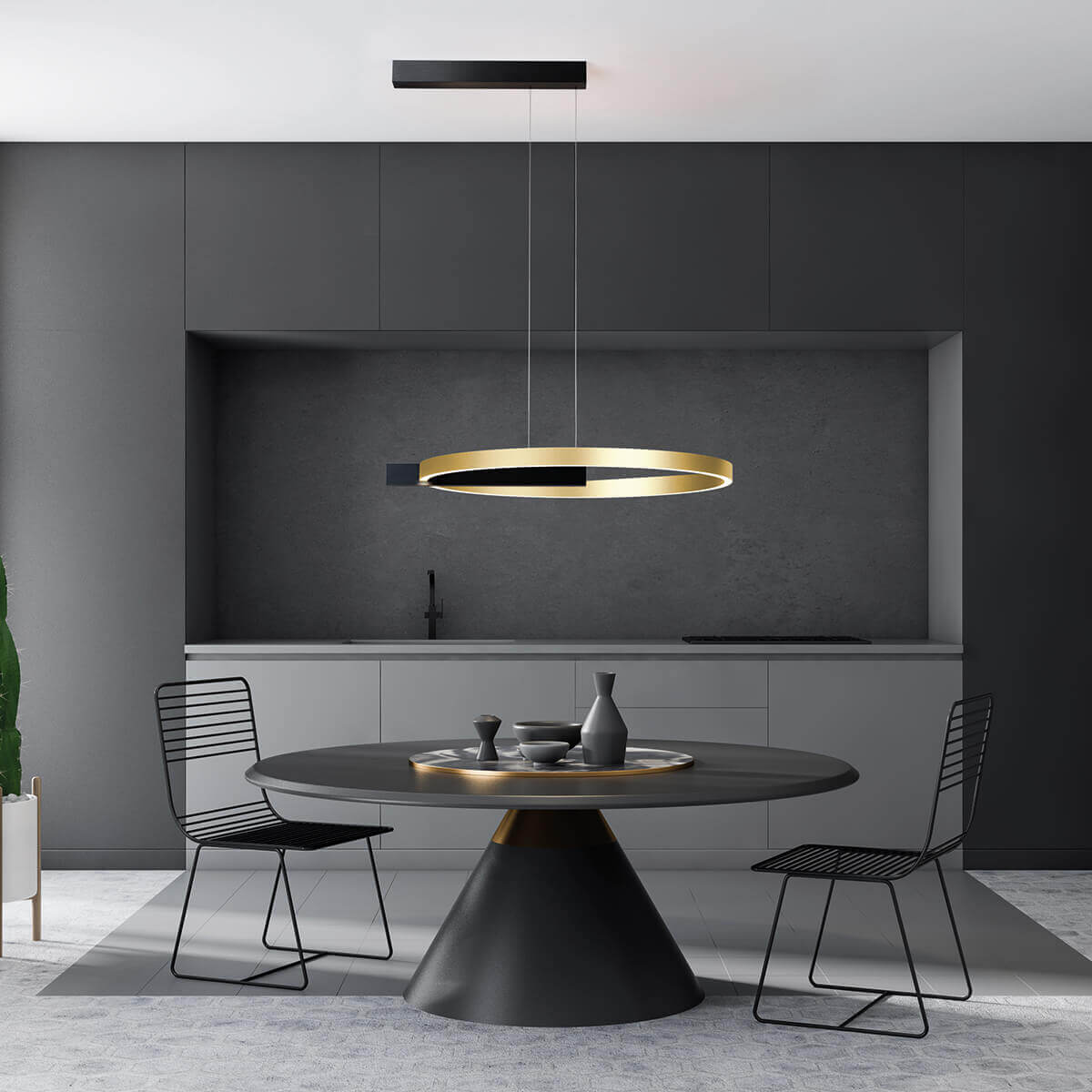 Gefertigt „Made in Germany“ überzeugt diese Designer-Pendelleuchte durch höchste Verarbeitungsqualität und eine elegante, reduzierte Ästhetik. Die vielseitigen Farbvarianten – von klassischem Schwarz bis hin zu edlen Kombinationen mit eloxierten Oberflächen in Gold, Taupe oder Anthrazit – ermöglichen sowohl ausdrucksstarke Akzente als auch harmonische Ton-in-Ton-Konzepte für anspruchsvolle Interieurs.