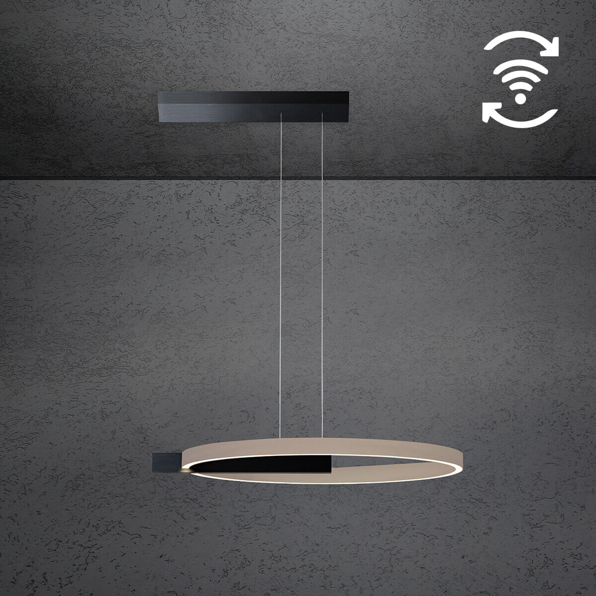 Setzen Sie mit dieser großzügigen Ring-Pendelleuchte ein elegantes Statement und schaffen Sie eine Lichtatmosphäre, die sich flexibel an Ihre Bedürfnisse anpasst – stilvoll, smart und zukunftsweisend.