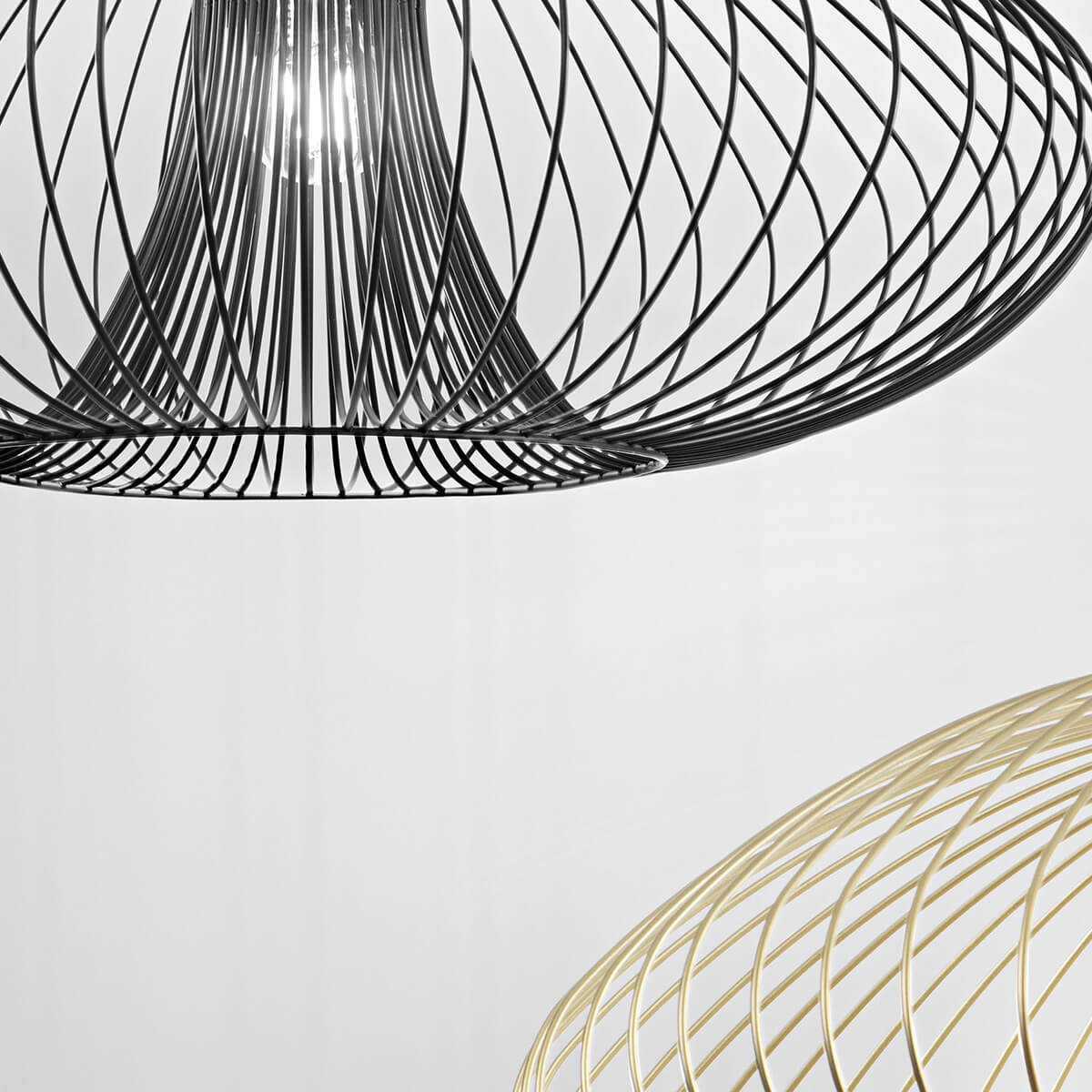 Ihr charakteristischer Schirm besteht aus filigranen Metallstreben, die das Licht auf faszinierende Weise brechen und streuen. Dadurch entsteht ein spannendes Spiel aus Licht und Schatten, das dem Raum Tiefe und Atmosphäre verleiht. Der indirekte und diffuse Lichtaustritt sorgt für eine weiche, blendfreie Ausleuchtung und schafft ein angenehm wohnliches Ambiente – ideal für Wohnzimmer, Esszimmer, Schlafzimmer oder Flure.