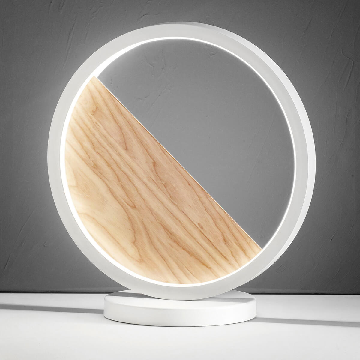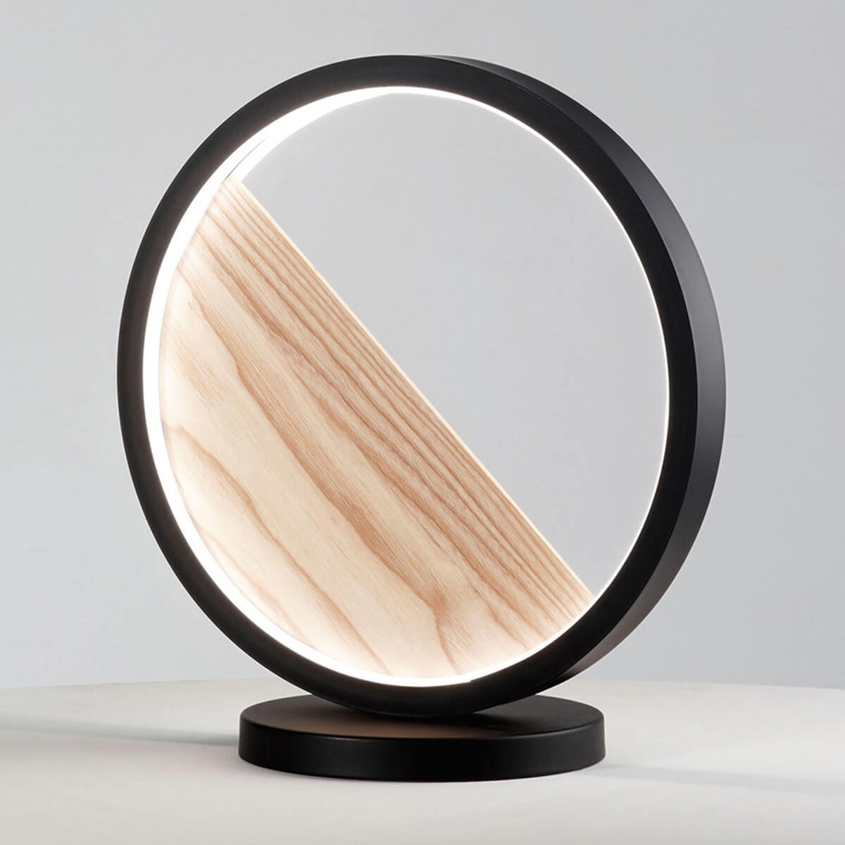 Fabas Luce Pierre LED Tischleuchte – stilvolle Designer-Tischlampe mit Metallring, Echtholz-Inlay und dimmbarem LED-Licht