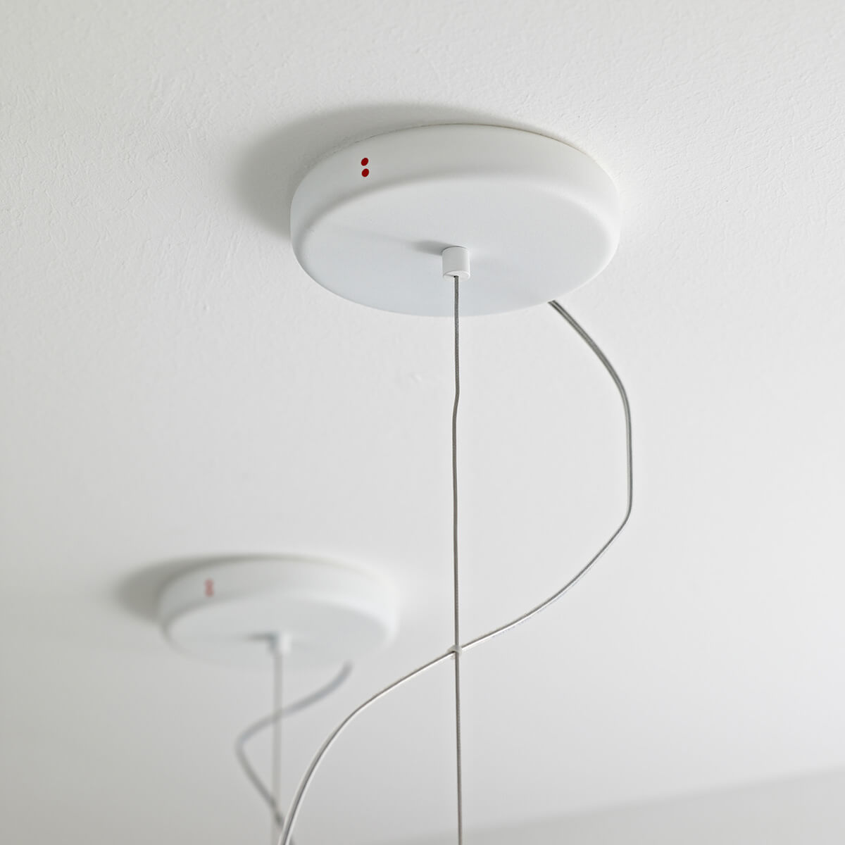 Ausgestattet mit einer E27-Fassung, kann die Lumi Poga Pendelleuchte mit einem energiesparenden Leuchtmittel Ihrer Wahl bestückt werden. Tragstruktur und Baldachin der Leuchte bestehen aus weiß beschichtetem Metall und glasfaserverstärktem Polyester.