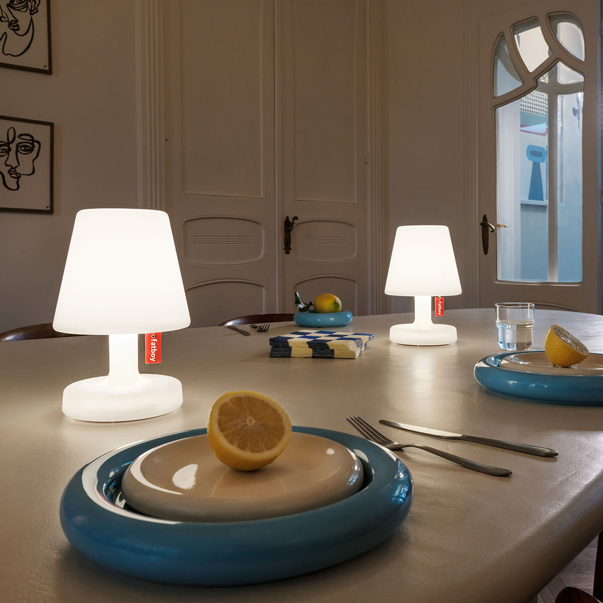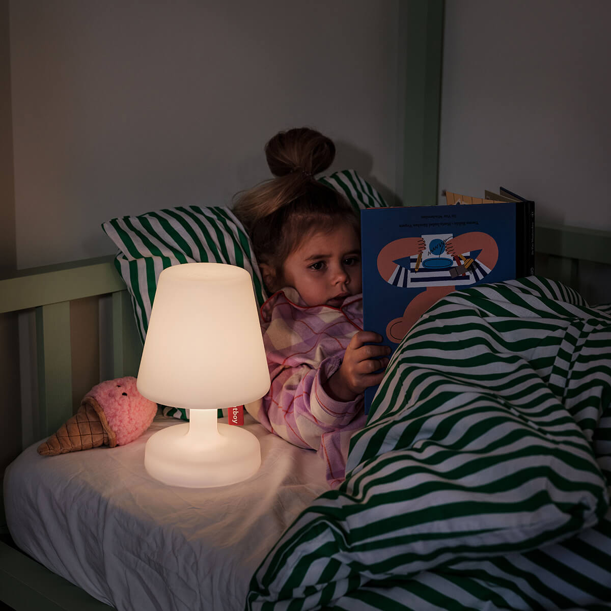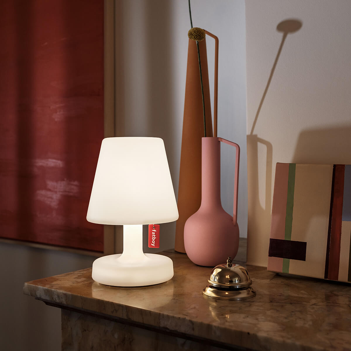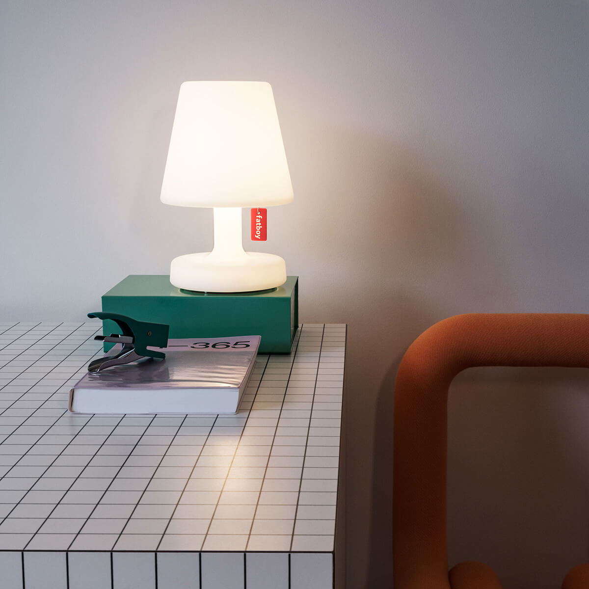 Klein, kabellos, kultverdächtig – mit der Fatboy Edison the Petit Tischlampe holen Sie sich ein ikonisches Lichtobjekt nach Hause, das Stil, Funktionalität und Design auf charmante Weise vereint. Ob auf dem Nachttisch neben dem Bett, auf der Kommode in Wohn- oder Kinderzimmer oder als stimmungsvolle Gartenbeleuchtung auf dem Terrassentisch, diese Leuchte begeistert überall.