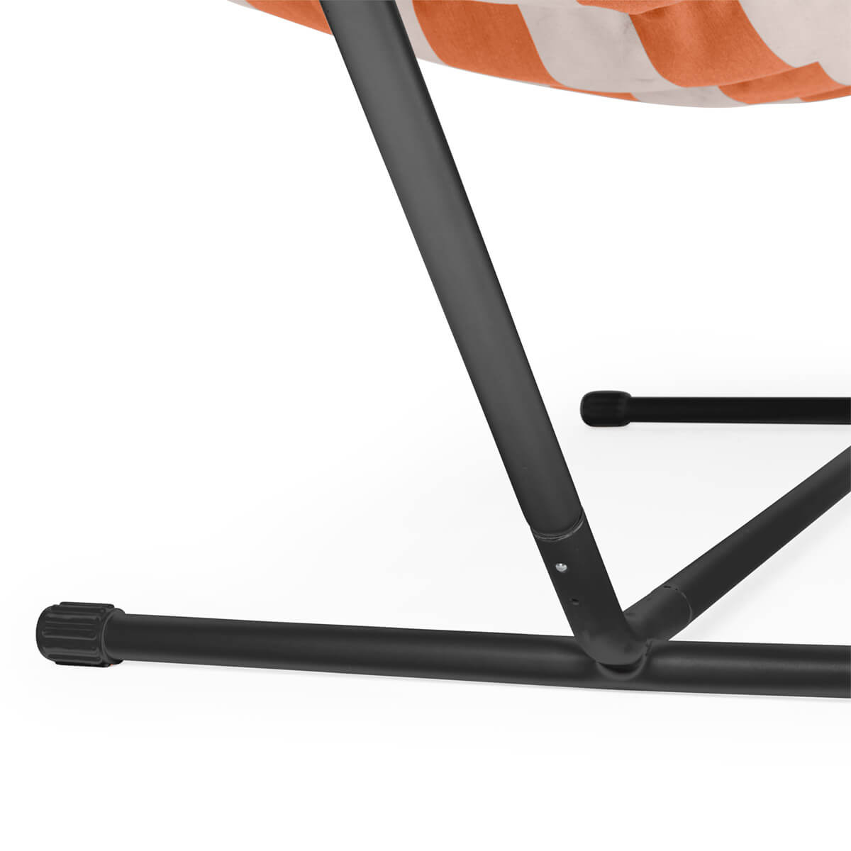 Dank ihres selbsttragenden Metallgestells benötigen Sie keine Bäume oder zusätzliche Befestigungen. Der Aufbau ist kinderleicht: Das Gestell einfach zusammenstecken, die Hängematte ausrollen, einhängen und die gewünschte Höhe über die Klettverschlüsse an beiden Enden einstellen. Schon können Sie sich dem Hängemattenleben hingeben und pure Entspannung genießen.