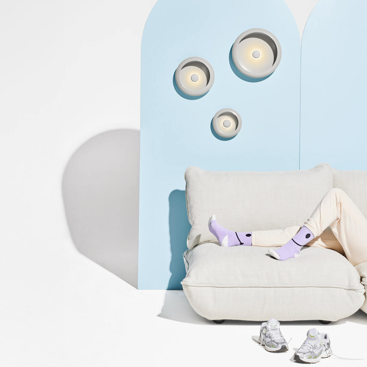 Indem Sie alle drei Oloha Wandleuchten an der Wand arrangieren, schaffen Sie ein einzigartiges Designkunstwerk – eine lustige Lichtshow, die Wohnzimmer und Flur ein besonderes "Oh-La-La"-Feeling verleiht. Da die Produkte gegen Nässe und Regen geschützt sind, können sie auch problemlos im Außenbereich verwendet werden und Balkon und Terrasse mit ihrem kreativen Design verschönern.
