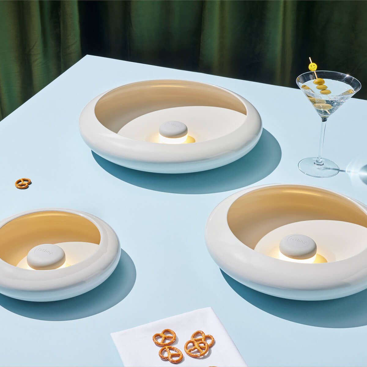 Fatboy Oloha Trio LED Akkuleuchte & Schale: leuchtendes Kunstwerk und facettenreiches Stimmungslicht