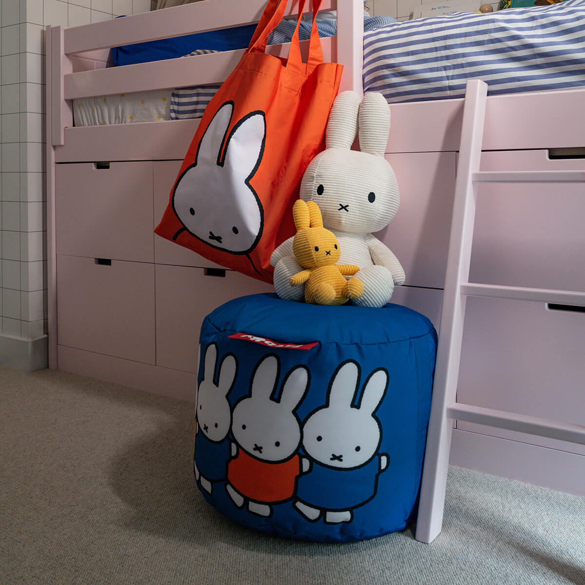 Ob im Kinderzimmer, in der Spielecke des Wohnzimmers oder im Schlafzimmer – der Pouf fügt sich harmonisch in unterschiedliche Wohnbereiche ein und setzt überall einen sympathischen Akzent. Die fröhlichen Illustrationen sprechen Kinder ebenso an wie erwachsene Miffy-Fans und machen den Hocker zu einem Designobjekt für alle Generationen.