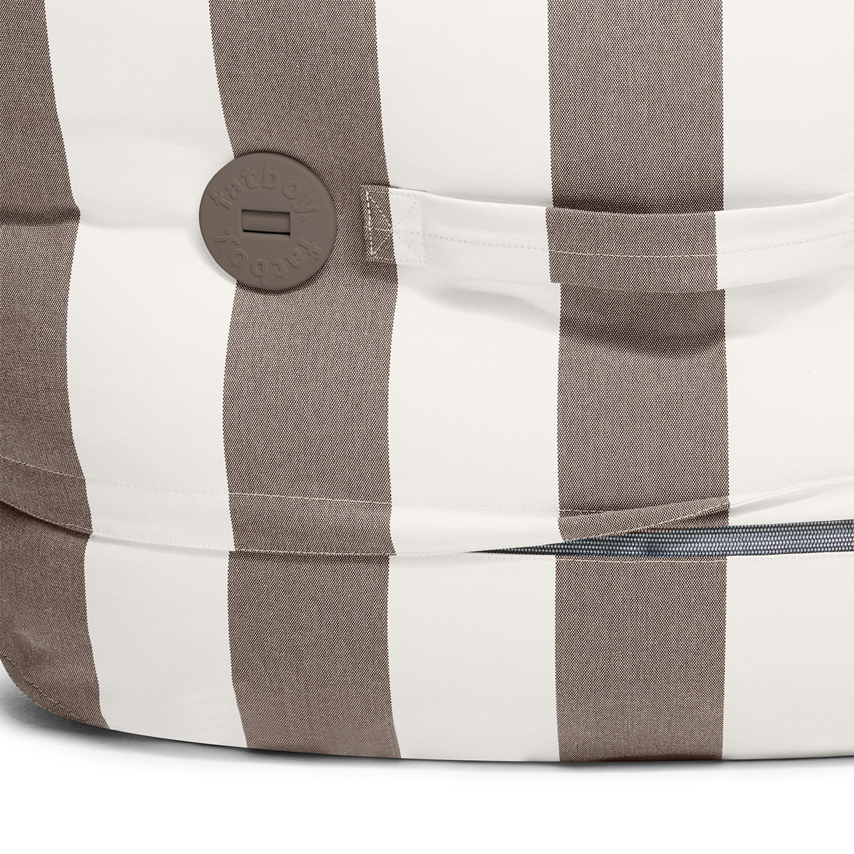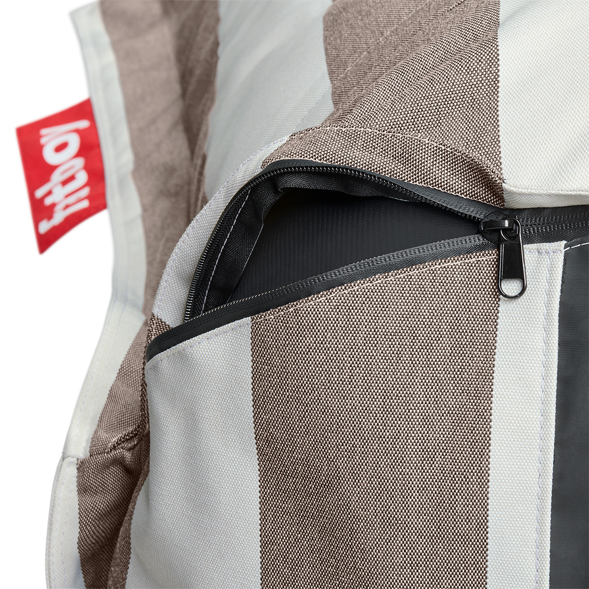 Trotz seines gemütlichen Looks ist der BonBaron Outdoor für das Leben im Freien gemacht. Der Bezug aus wasser- und schmutzabweisendem Olefin-Stoff hält Regen, Sonne und Schmutz mühelos stand. Ein wasserdichter Reißverschluss, die atmungsaktive Beschichtung und eine Netzöffnung unter den Knöpfen, die für eine ausreichende Belüftung sorgt, garantieren, dass das Material jederzeit angenehm bleibt. Sollte der Sessel doch einmal nass werden, genügt ein kurzes Trockenwischen – und schon ist er wie der einsatzbereit.