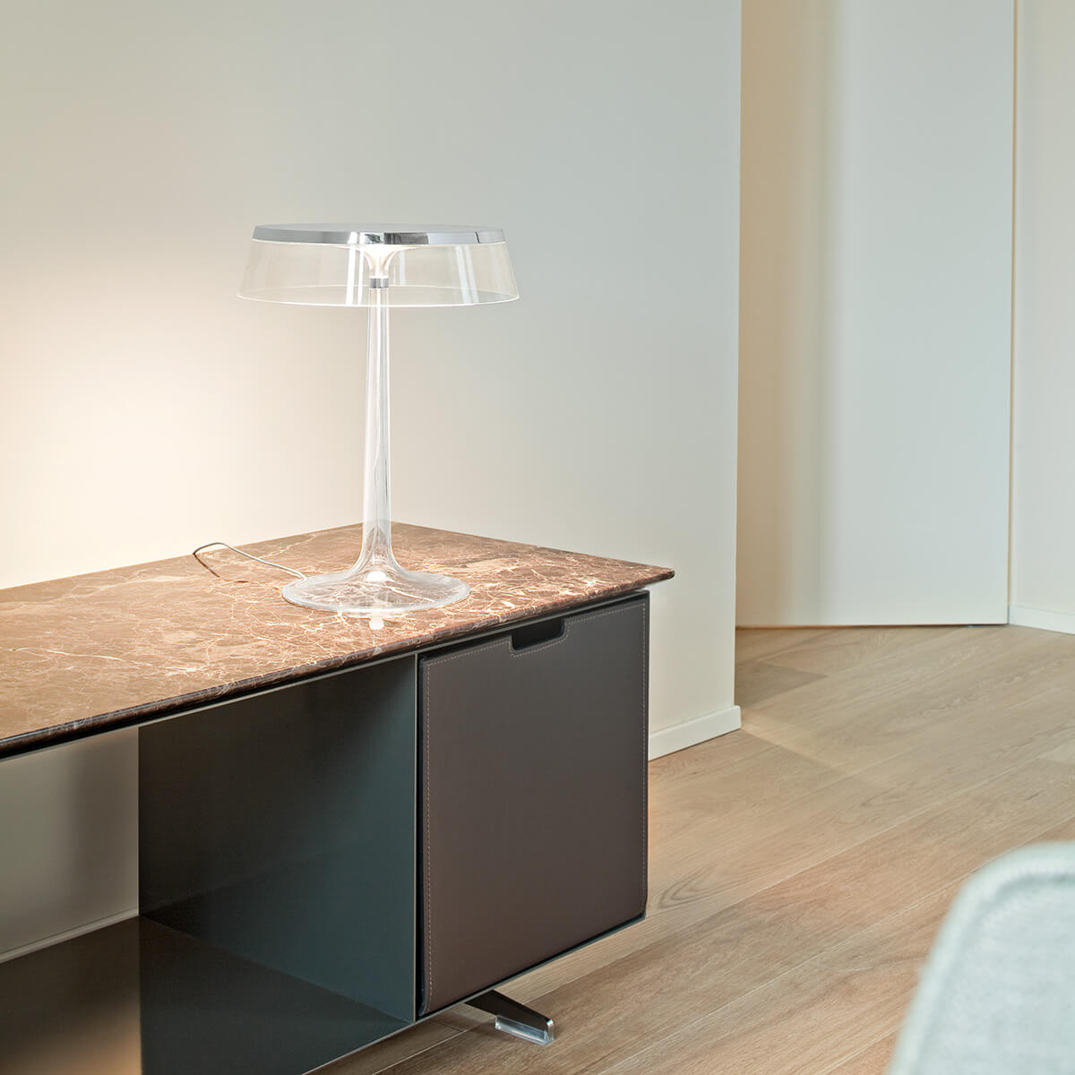 Flos Bon Jour Tischleuchte in Chrom: glanzvoller Minimalismus mit französischem Esprit