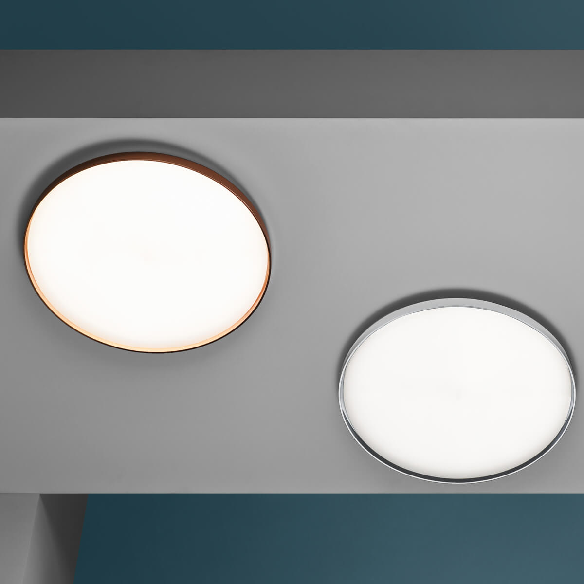Flos Clara Wand- / Deckenleuchte: strahlend helle Lichtscheibe mit dekorativen Zusatzringen