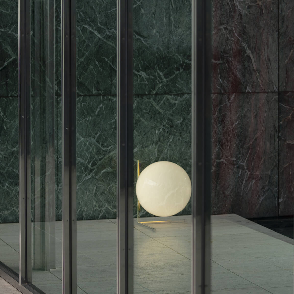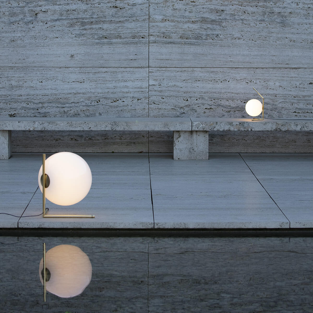 Die IC T3 verfügt über einen Diffusor aus mundgeblasenem Opalglas, der ein sanftes, gleichmäßig gestreutes Licht verbreitet und für eine stimmungsvolle, einladende Atmosphäre sorgt. Die Glaskugel ruht auf einem minimalistischen Fuß, erhältlich in satiniertem Messing oder 24-karätigem Gold. Diese hochwertigen Materialien verleihen der Leuchte eine elegante Optik, die sich harmonisch in verschiedenste Interieurs einfügt – ob im Wohnzimmer, Flur oder als stilvoller Akzent auf einem Sideboard.
