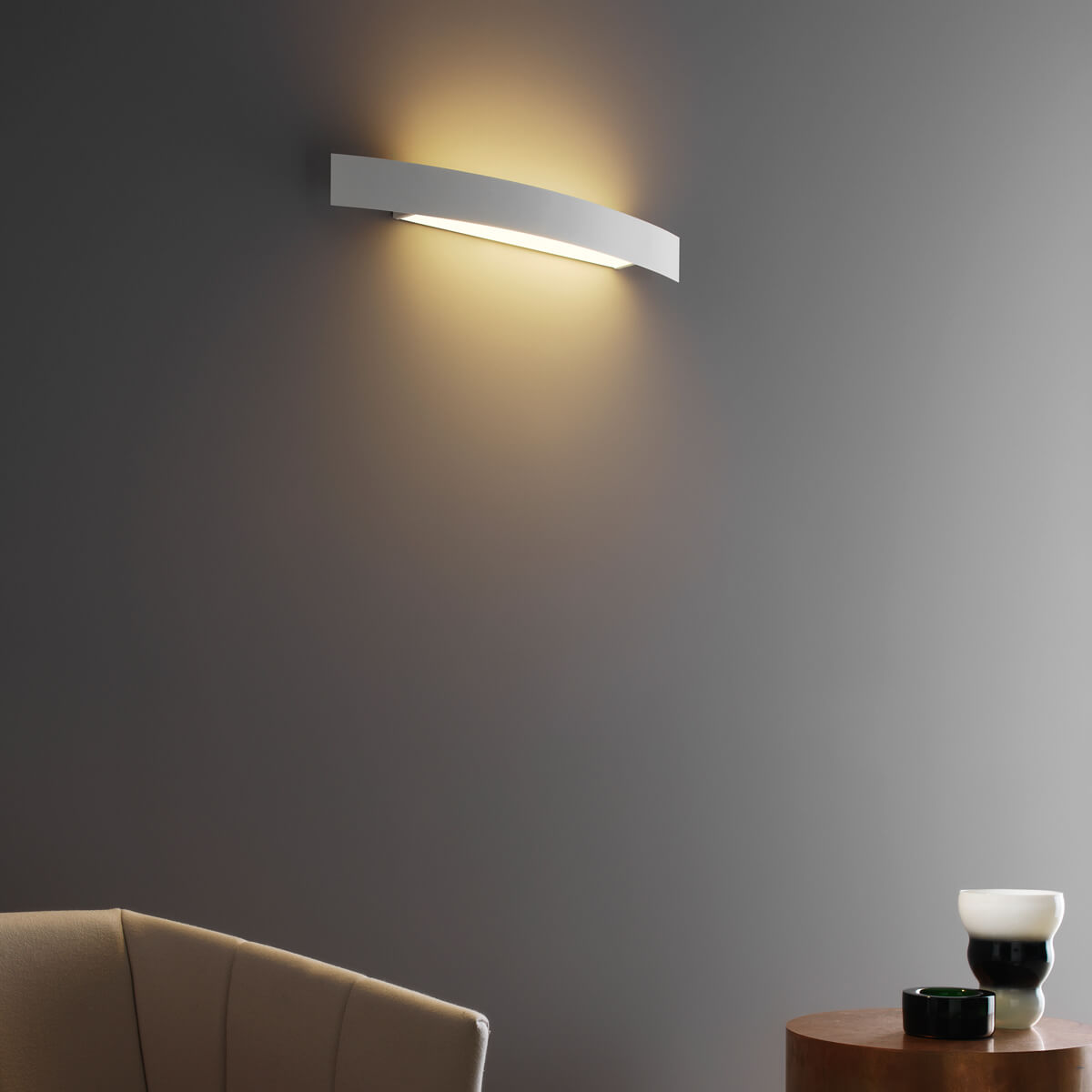 - Sanft gebogene Wandlampe in linearem Design