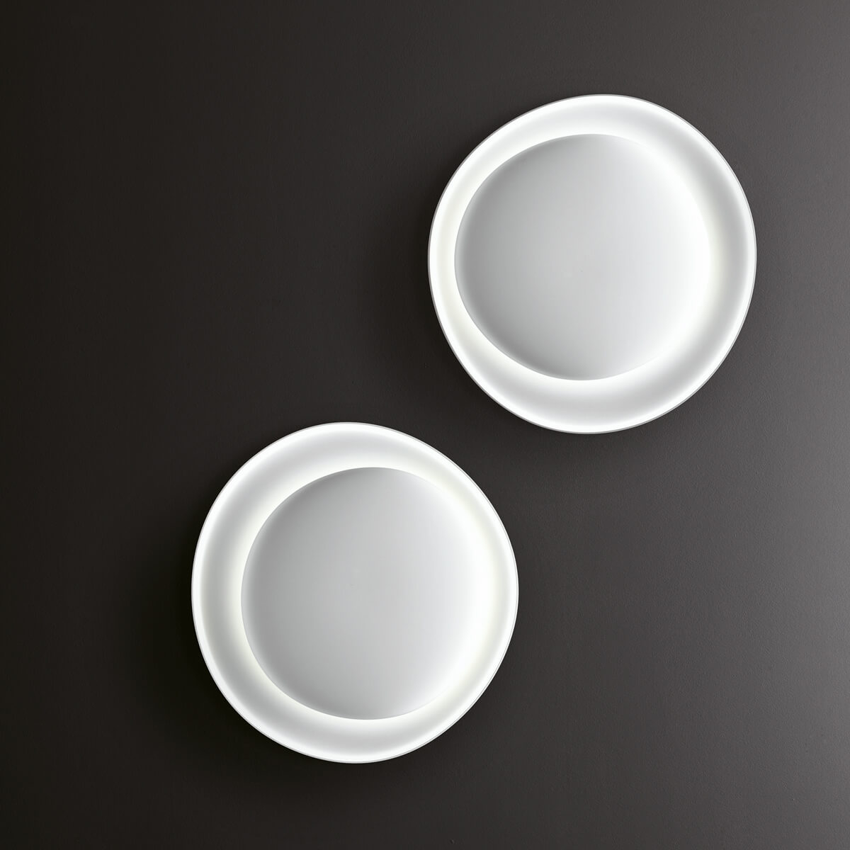 Die mattweiße Tönung der Foscarini Bahia Mini LED unterstreicht die diskrete Präsenz des Produkts und macht allein die magische Komposition von Licht und Dunkel zum Hauptelement des Dekors. Die Leuchte versteht es, allein eine ganze Raumfläche zu prägen oder mehrfache Kompositionen zu bilden, die zu bezaubernden Lichtinseln werden.