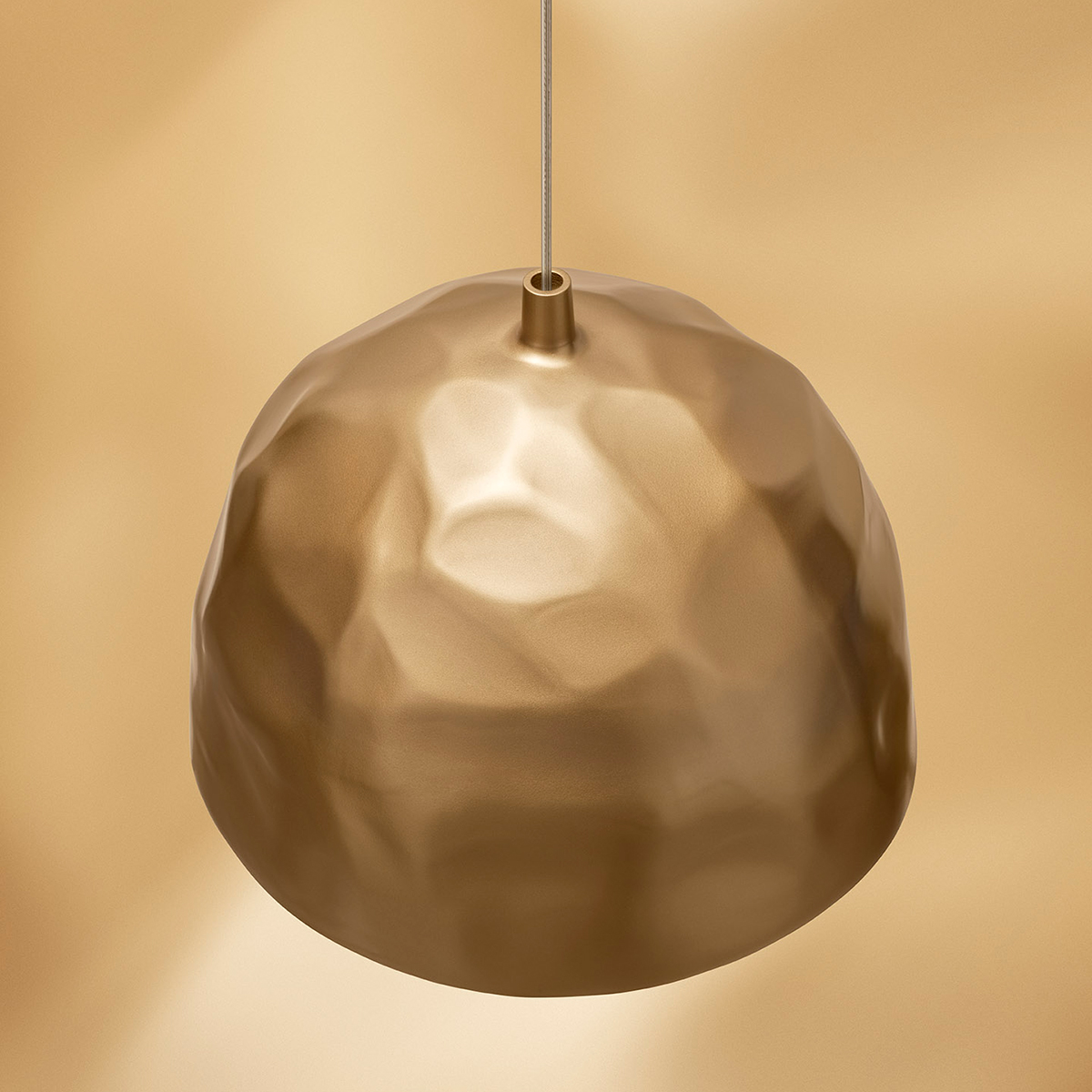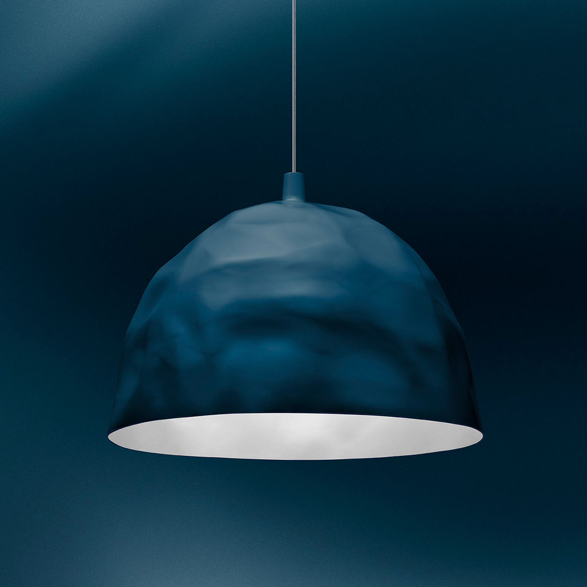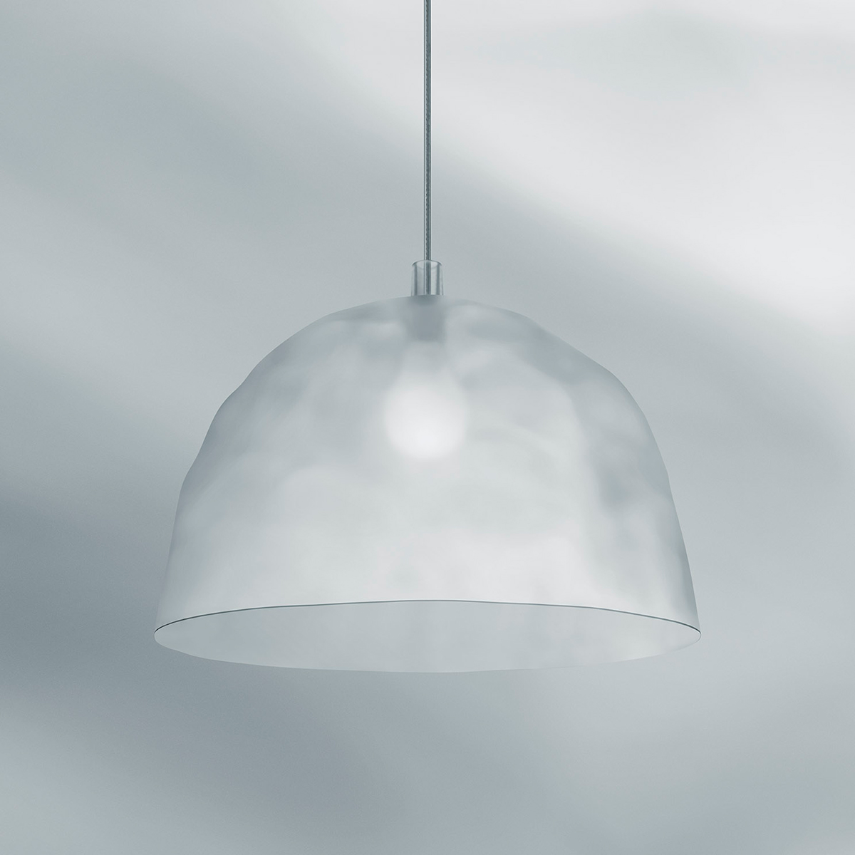 - Bewegt gestalteter Leuchtenschirm mit unregelmäßiger Außenfläche in transparenter oder farbig lackierter Ausführung