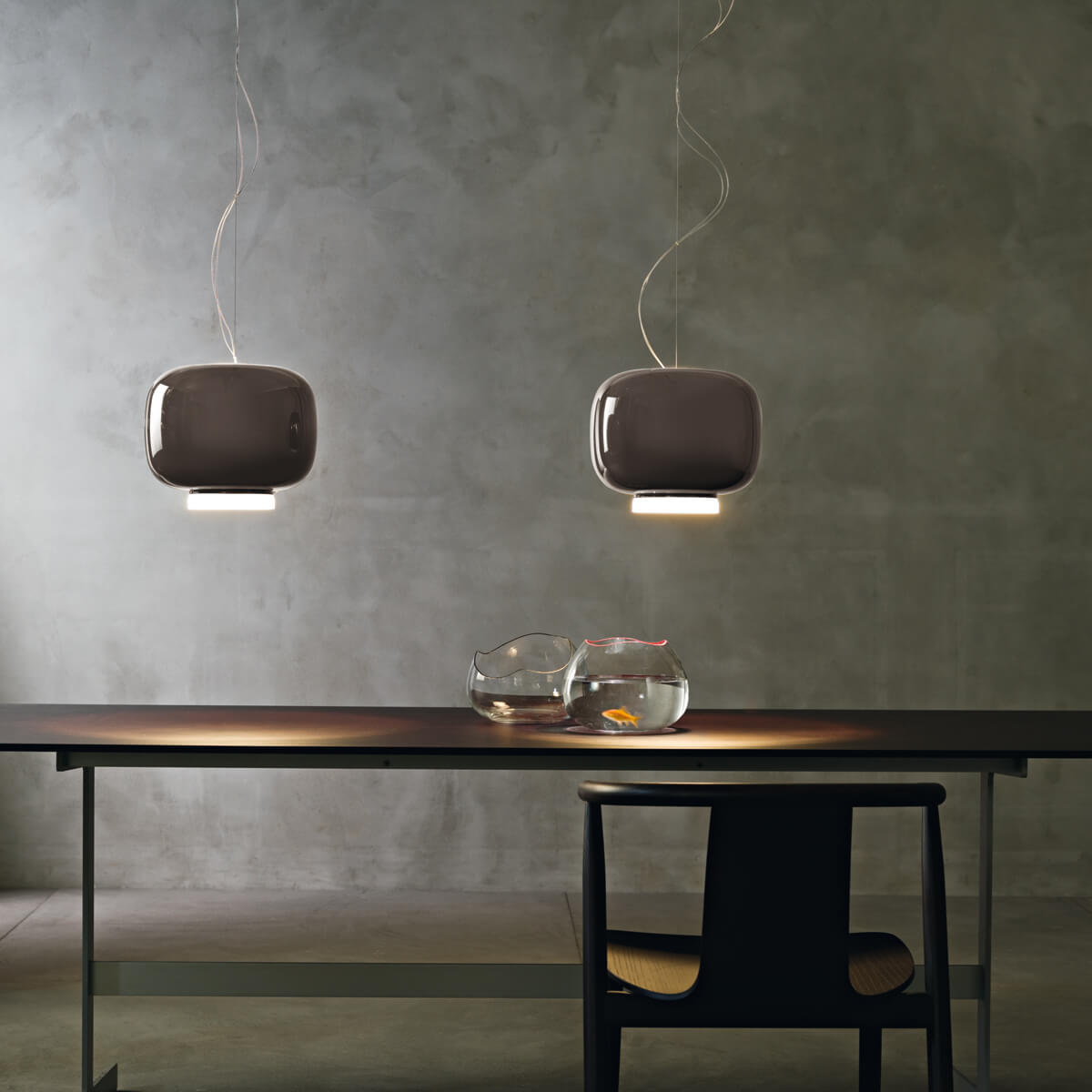Auf diese Weise eignen sich die Chouchin Sospensione, ob allein oder in Reihen und Bündeln installiert, vor allem zur Beleuchtung von Tischen in Bars, Restaurants oder im privaten Essbereich.