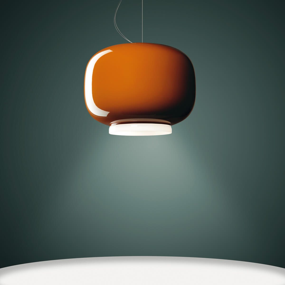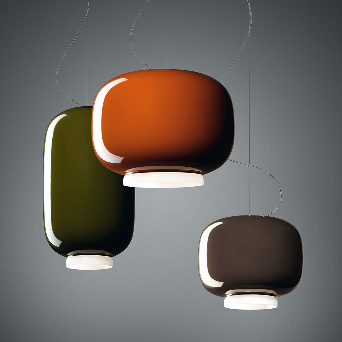 In ihrem Bestreben, den magischen Charakter der Laternen in eine moderne Formensprache zu übersetzen, vereinfachte die Designerin Ionna Vautrin das Design derselben und wählte als Material mundgeblasenes Glas, dessen glanzvolle Lackierung die originelle Farbgebung der Chouchin Sospensione unterstreicht. Das Ergebnis ist ein Objekt von harmonischer Kontur und moderner Wirkung, das allein oder in Komposition mit weiteren Leuchten der Serie seine belebende Wirkung entfaltet.