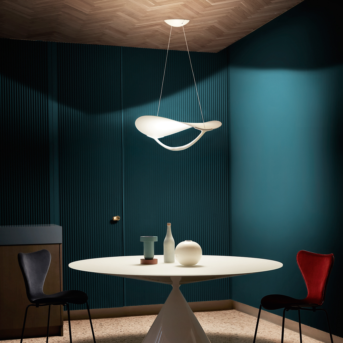 - Elegant geschwungene Pendelleuchte mit klarer Linie