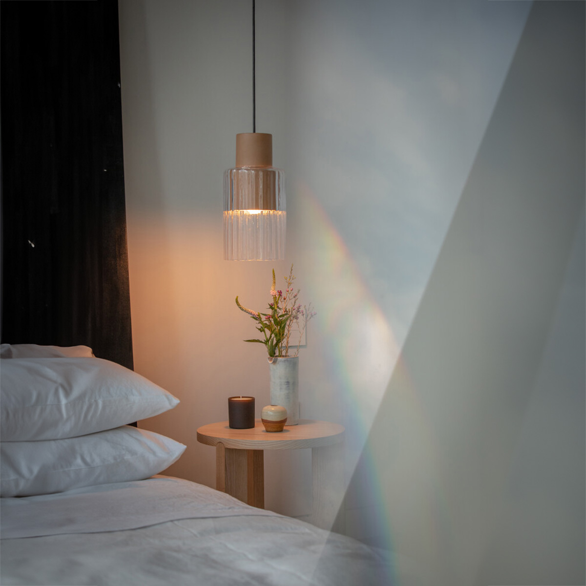 Das Zusammenspiel aus keramischem Sockel und elegantem Glasschirm verleiht der Leuchte ihre besondere Ausstrahlung. Der Schirm wird in Prag handgeblasen und ergänzt die erdige, matte Oberfläche des Tons mit feiner Transparenz. So entsteht ein spannungsreicher Materialdialog, der die Pendellampe zugleich ursprünglich und raffiniert wirken lässt. Über dem Esstisch, der Kücheninsel oder im Wohnzimmer setzt Barro einen stilvollen Akzent. Ebenso überzeugend wirkt sie in Restaurants, Cafés, Hotels oder modernen Lounge-Bereichen, wo sie mit ihrer warmen Präsenz Atmosphäre schafft.