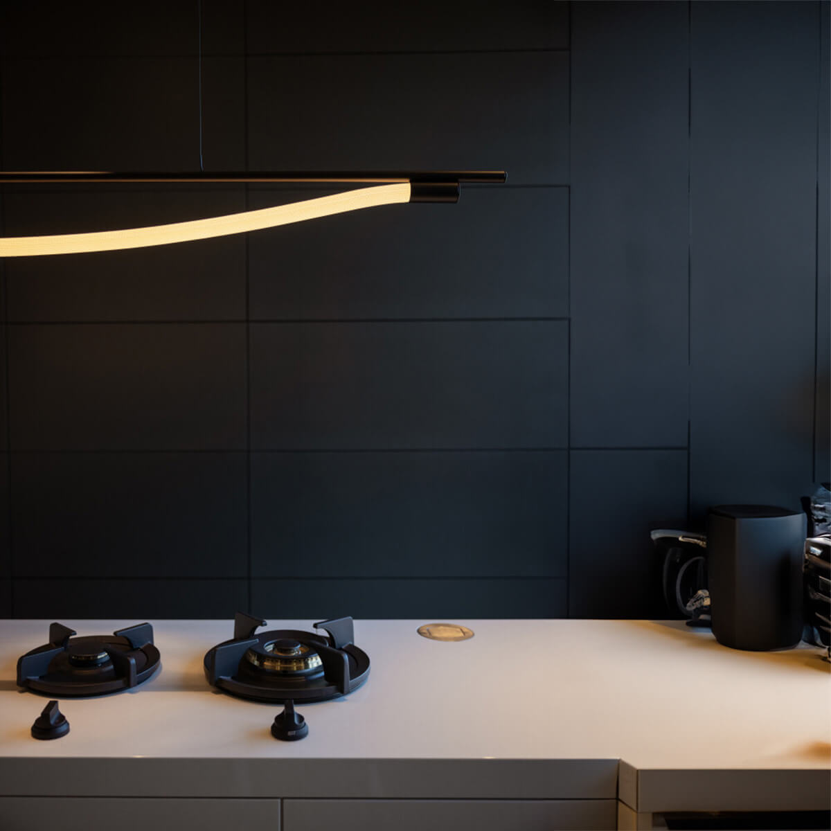 Mit einer extrawarmen Lichtfarbe von 2.320 Kelvin schafft die Levity Bow160 ein besonders behagliches Ambiente. Dadurch eignet sie sich ideal für das Esszimmer, für längliche Esstische im offenen Wohnbereich, aber auch für Restaurants, Bistrots, stilvolle Hotels und hochwertige gastronomische Konzepte. Dank eines CRI von über 90 werden Farben natürlich und brillant wiedergegeben. Zusätzlich ist die Leuchte extern phasendimmbar, sodass Sie die Lichtstimmung flexibel an Tageszeit und Nutzung anpassen können.