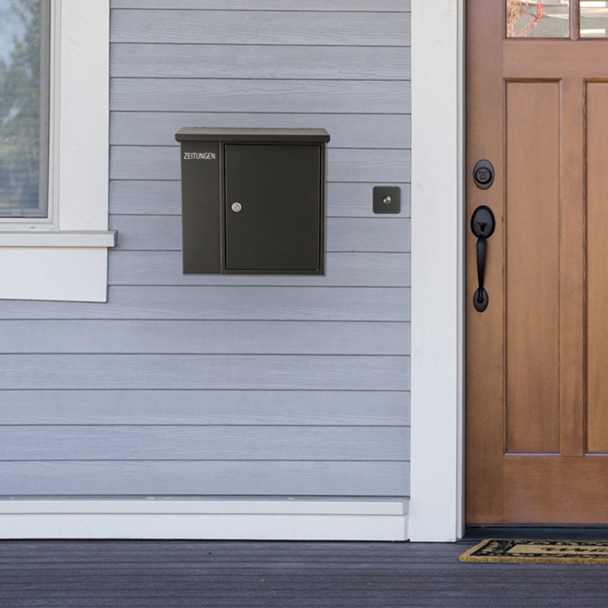 - Moderner Briefkasten mit Schriftzug "Zeitungen"