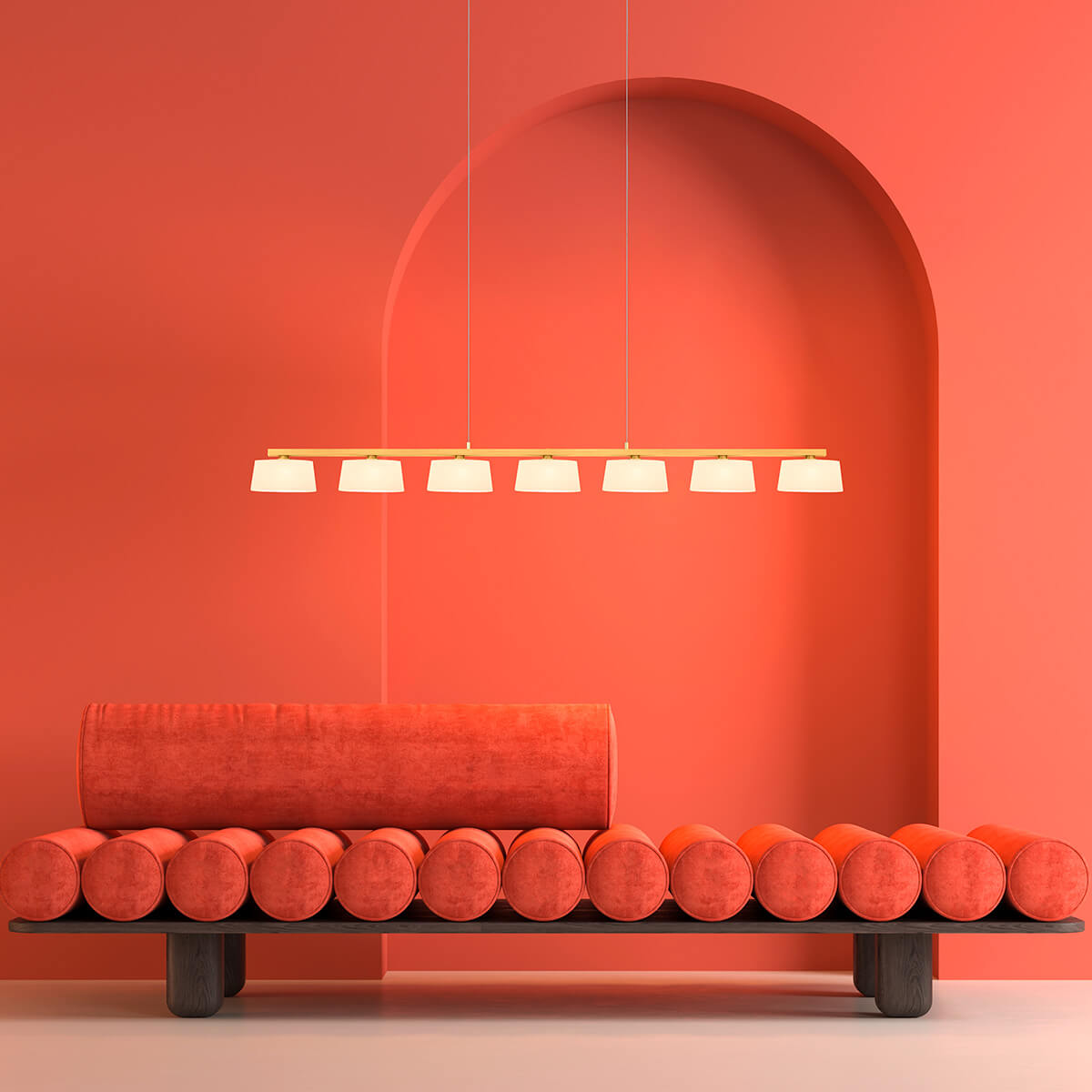 Die 7-flammige View LED Pendelleuchte von HELL ist die ideale Wahl für alle, die zu Hause große Tischflächen stilvoll beleuchten möchten. Mit ihrer imposanten Länge von 117 cm eignet sie sich perfekt für ausgreifende Esstische, lange Tafeln oder offene Wohn-Essbereiche. Das elegante Balkendesign wirkt modern und zeitlos zugleich und setzt einen klaren, hochwertigen Akzent im Raum.