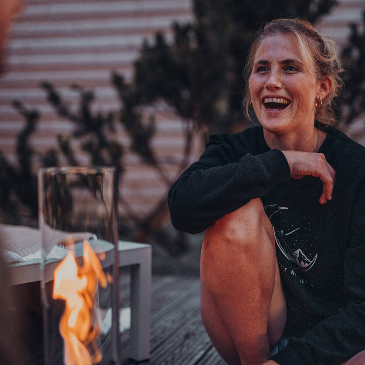 Als Brennstoff bietet höfats ein natürliches, nachhaltiges Bioethanol Sicherheitsbrenngel an. Dieses wird aus nachwachsenden Rohstoffen gewonnen und erzeugt beim Verbrennen kaum Gerüche und Rauch. Daher lässt sich das höfats Spin 120 Tischfeuer auch problemlos im Innenraum platzieren. Wir bitten Sie jedoch, auf eine gute Durchlüftung sowie ausreichend Abstand zu Decke und Wand zu achten.