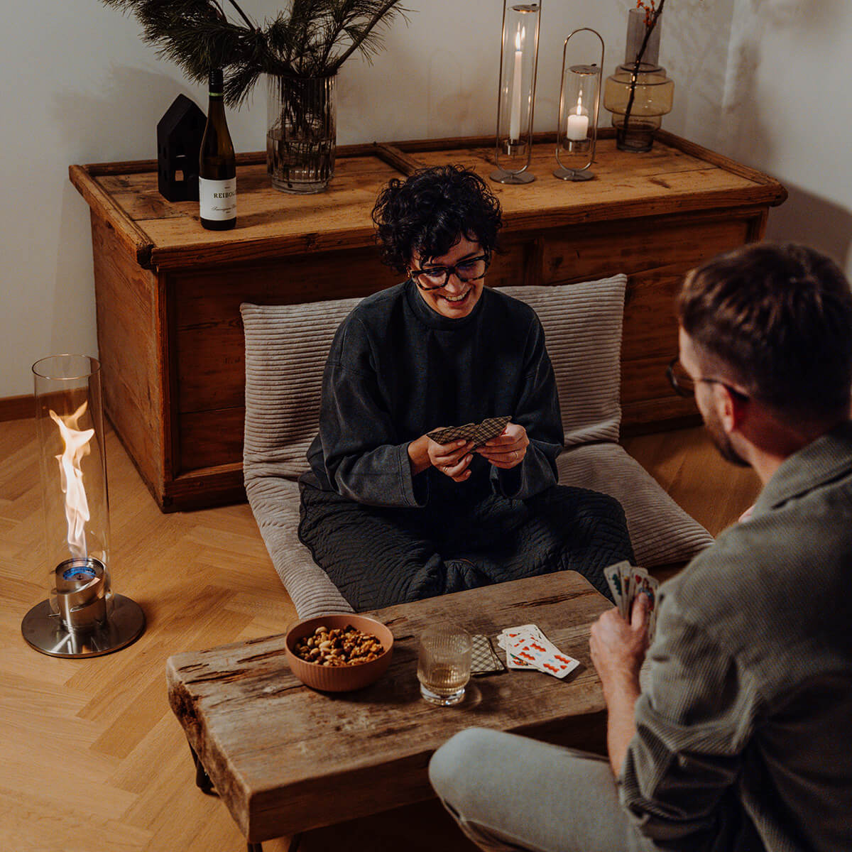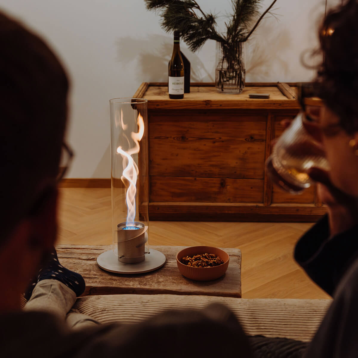Genießen Sie mit dem Spin 1200 Tischfeuer & Windlicht von höfats unvergessliche Momente und eine Atmosphäre, die sowohl drinnen als auch draußen Ihre Erwartungen übertrifft – ideal für gesellige Abende oder entspannte Momente allein, zu jeder Jahreszeit.