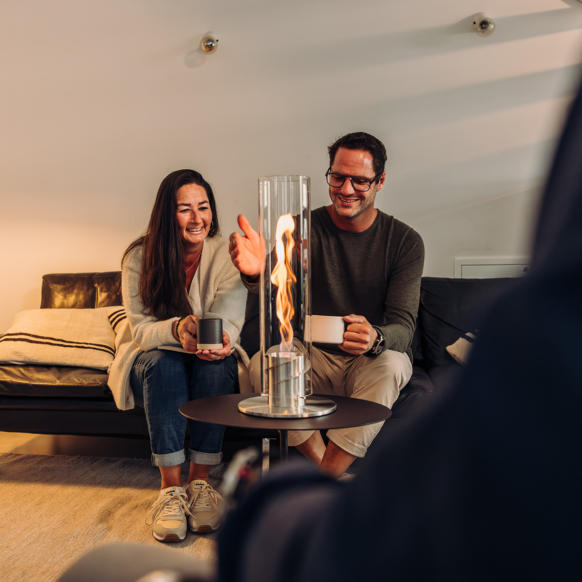 Die Tischfeuerstelle brennt nahezu geruchs- und rauchfrei, dank des biologischen höfats Bioethanol Flüssig-Brennstoffs. Eine Füllung von etwa 500 ml gewährleistet bis zu 150 Minuten lang anhaltenden Feuerzauber. Die Flammenhöhe lässt sich mit dem mitgelieferten Eco-Ring effektiv regulieren und die maximale Brenndauer sogar noch verdoppeln. Und wenn Sie die Flamme löschen möchten, nutzen Sie einfach den beiliegenden Löschdeckel.