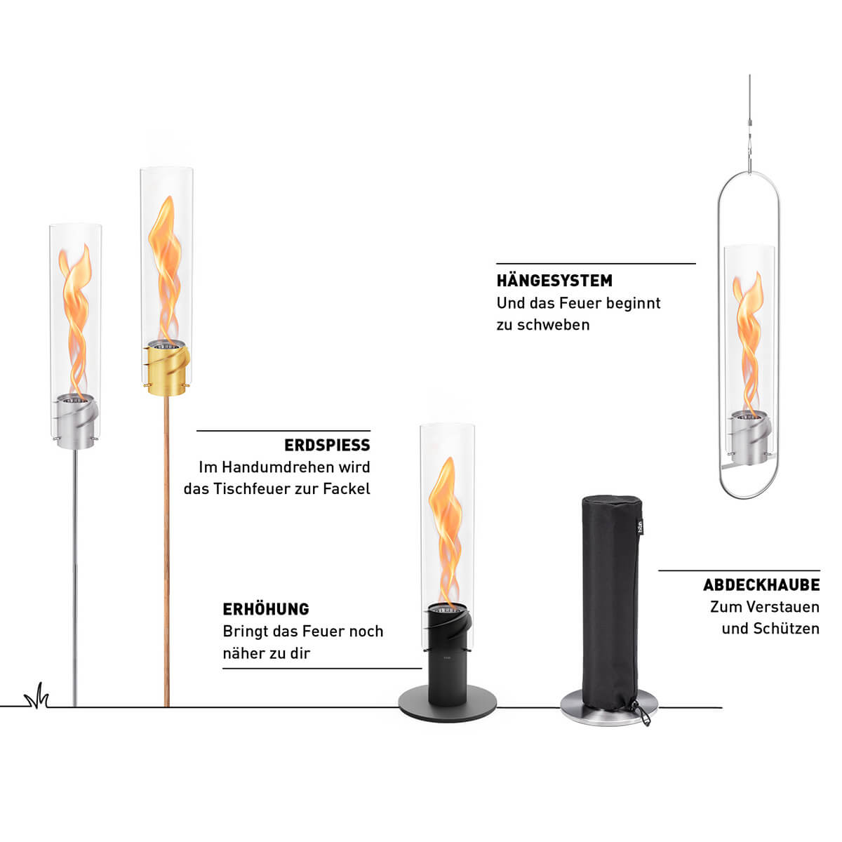 - Tischfeuer, Windlicht und Gartenfackel in preisgekröntem Design