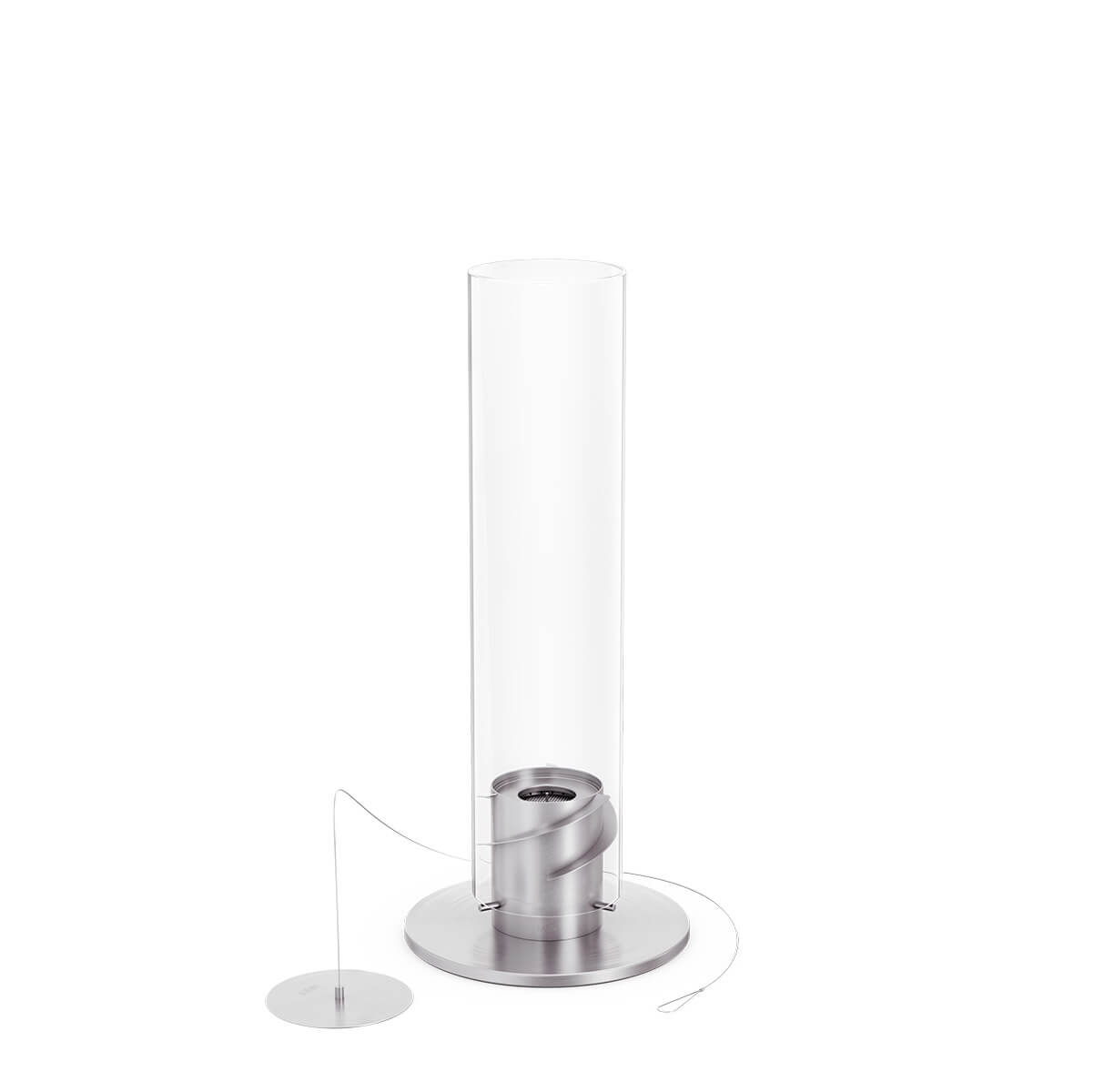 Wie funktioniert das höfats Spin 900 Tischfeuer? Der skulpturale Feuerwirbel basiert auf einer ausgeklügelten Technik: Sobald das höfats Bioethanol entzündet und der hitzeresistente Borosilikatglaszylinder aufgesetzt wird, bringt der Luftstrom die Flammen durch drei rotierende Flügel in Bewegung. Diese Rotation, verstärkt durch die eigene Thermik und den Kamineffekt des Glases, intensiviert die spiralförmige Flammensäule. Dass die erzeugte Flamme auch bei Tageslicht hell und markant erscheint, garantiert der patentierte Bio-Burner mit seiner ausgeklügelten Brennertechnologie.