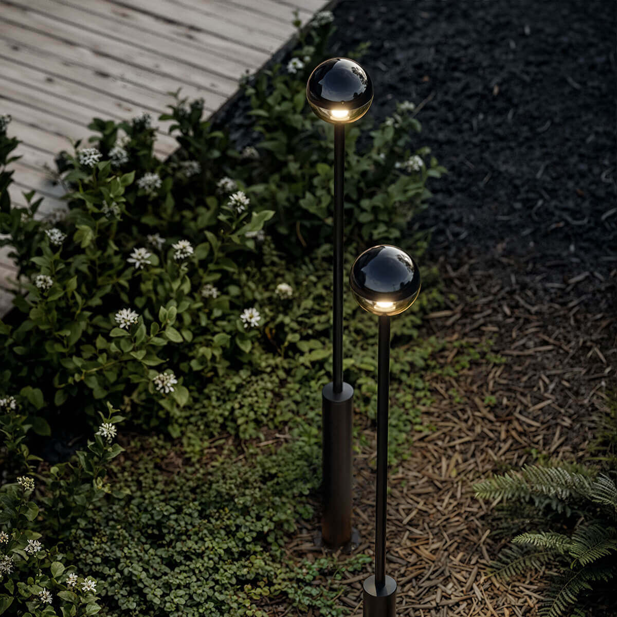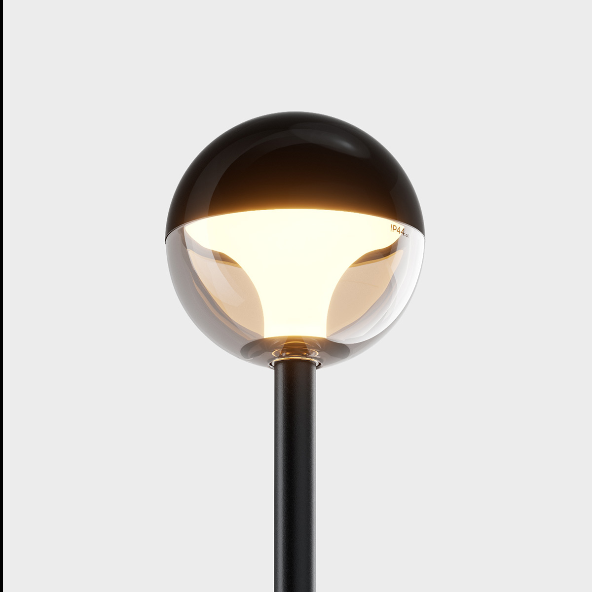 - Kugelförmige Pollerlampe mit rauchfarbenem Glasschirm