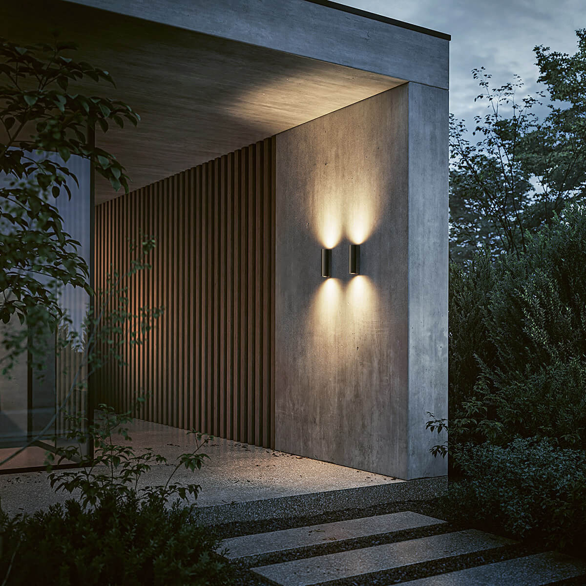 - Modern schlanke LED Außenwandleuchte mit Up- / Downlight