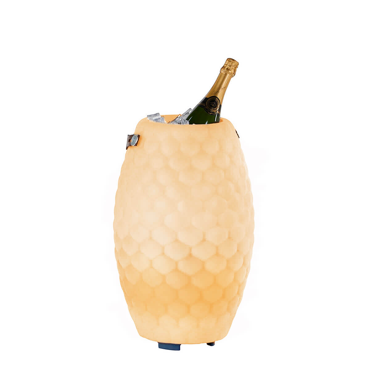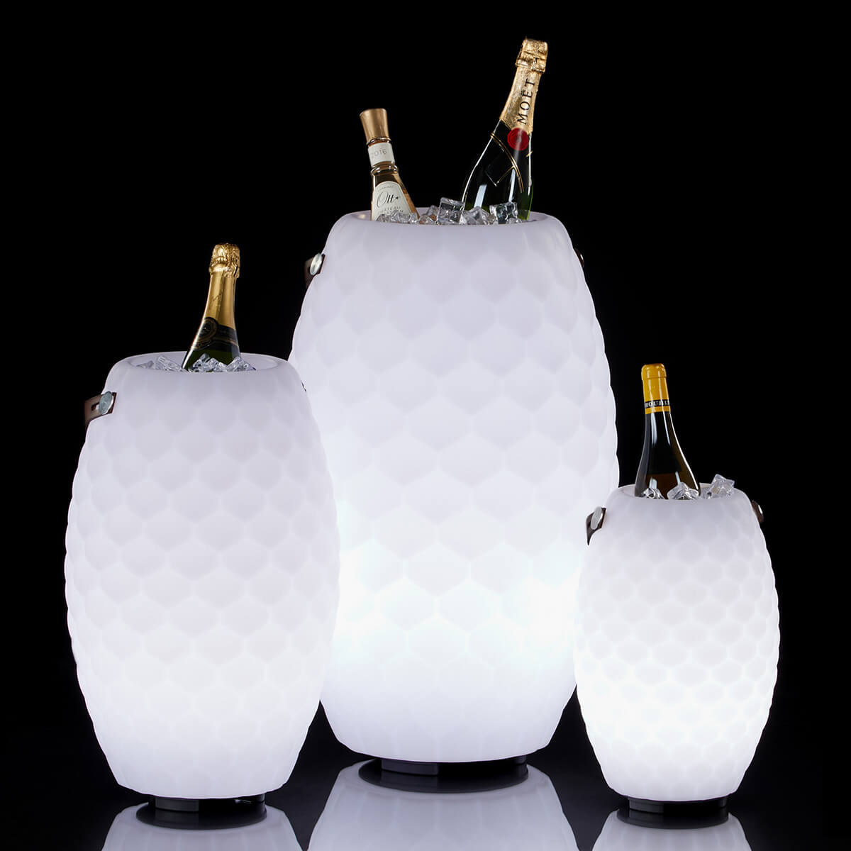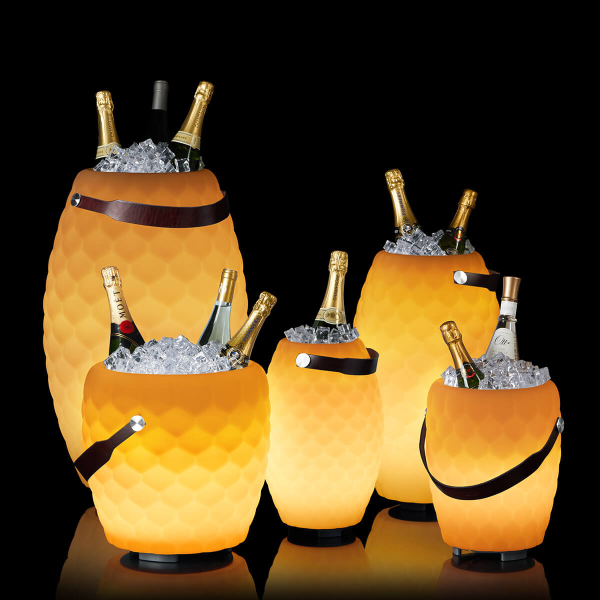 Das wasserdichte Innenfach der The Joouly LED Leuchten macht es möglich, sie auch als Getränkekühler oder Vase bzw. Pflanzgefäß zu nutzen. Das Fassungsvermögen variiert hierbei in Abhängigkeit der gewählten Ausführung: Die kleine The Joouly Ltd. 35 verfügt über ein Füllvolumen von ca. 1,5 Litern, die mittlere Joouly Ltd. 50 vermag etwa 2 Liter zu fassen, bei der großen The Joouly Ltd. 65 beträgt das Volumen des Behälters ca. 6 Liter.